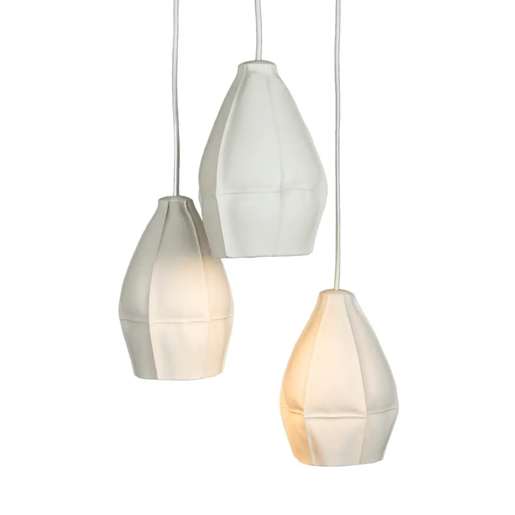 Souda's Kawa Pendant Lights are slip cast porcelain directly into dozens of leather molds resulting in highly-unique ceramic shades. The finalized pendant lights are dynamic and highly-unusual, emitting a soft glow that works well individually or in clusters.The pendant includes a single, black, 5" diameter circular canopy that attaches to the ceiling so that the piece can be hardwired. We recommend utilizing the services of a local, licensed electrician for install.Lamping: E26 medium base socketDimmable?: Yes, Depending on the type of bulbCord Length: 96in / 240cm, Black CordCanopy Size: 5" D x .25" H / 12cm D x 1cm HCanopy Color: BlackRecommended Bulb Type: CFL or LEDMax Watt: 25wUL Listed.