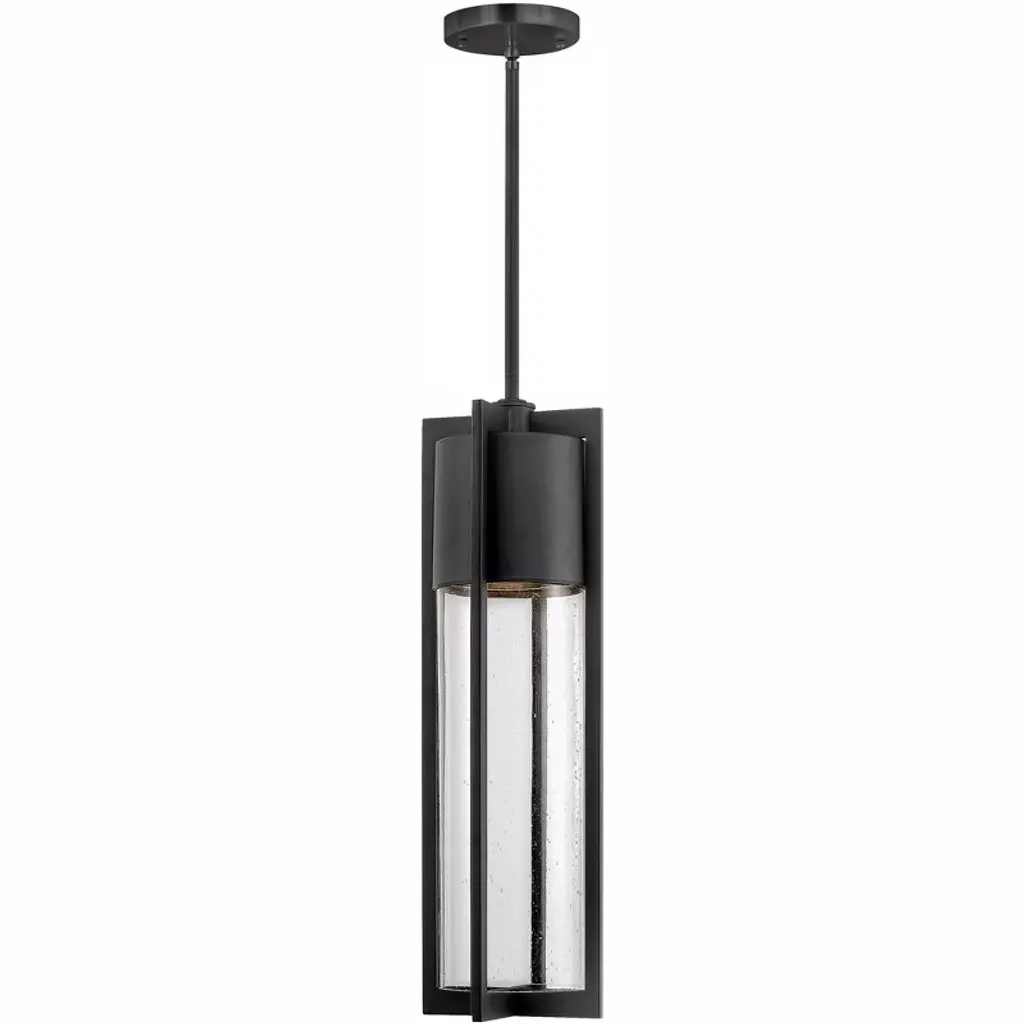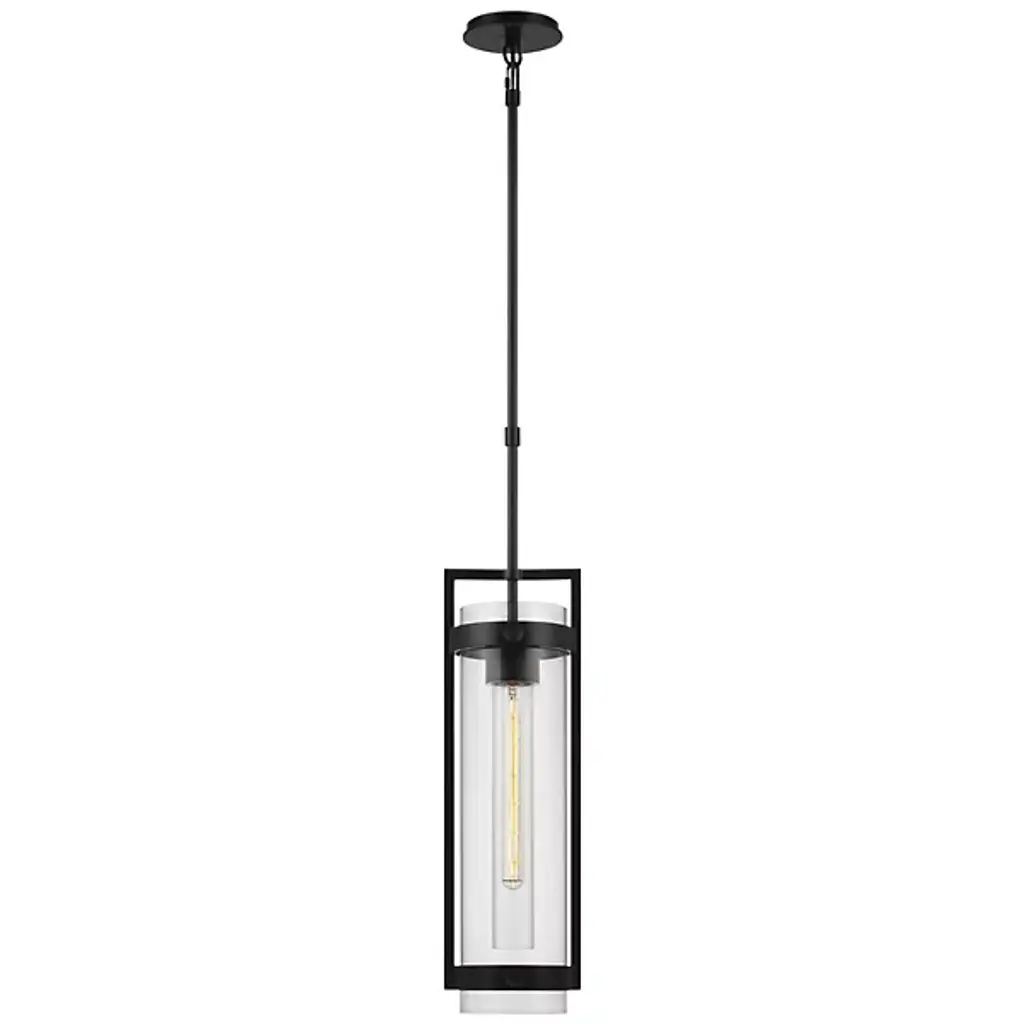 The Kears Outdoor Pendant by Visual Comfort Signature, formerly known as Visual Comfort, has a handsome composition that pairs clean lines and smooth curves together to bring an updated twist to classic, lantern-style fixtures. Suspended by a single down rod, a cylindrical glass shade houses a visible light source and is framed by a boldly finished, rectangular metal frame. These simple shapes complement one another in their layered arrangement, adding a dynamic touch to the balanced blend of form and function this pendant offers surroundings.