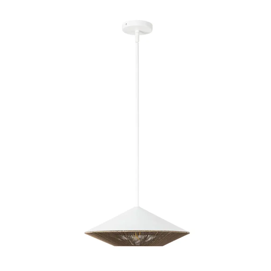 The playful geometric shapes in the Keaz collection offer a Japanese-inspired twist on mid-century design, presenting a symphony of angles, lines, and dimension. Each piece is crafted with metal bodies and natural rope accents not only illuminate your outdoor or indoor space, but also to serve as a striking centerpiece.