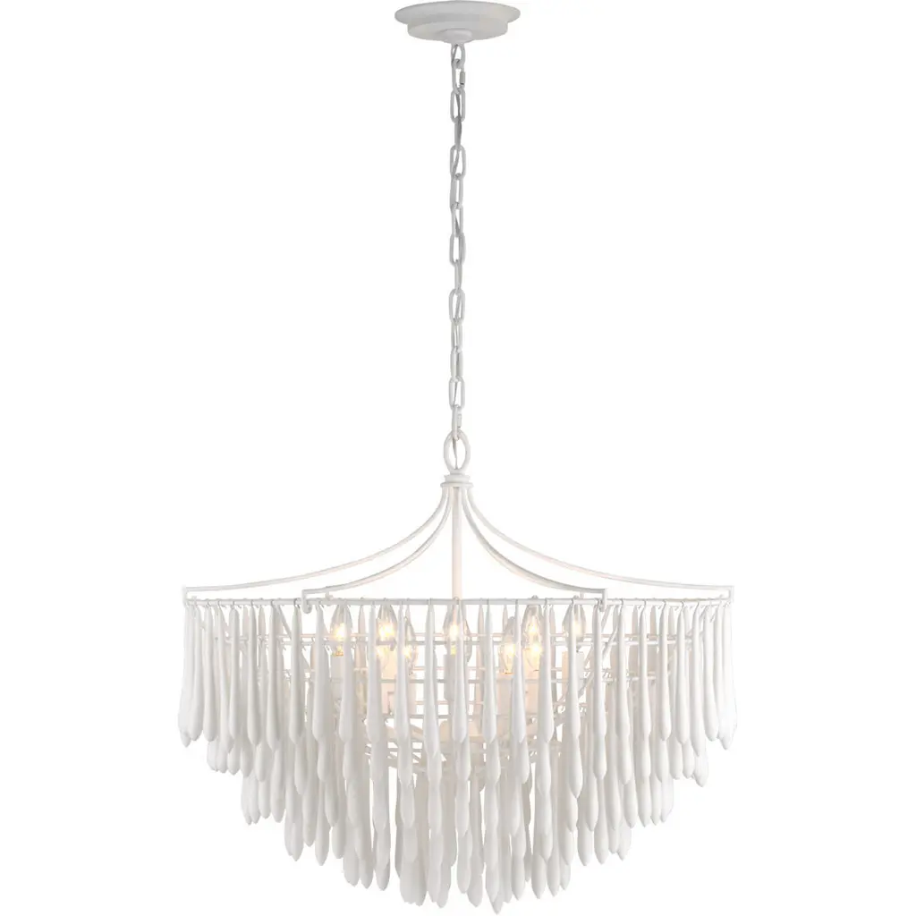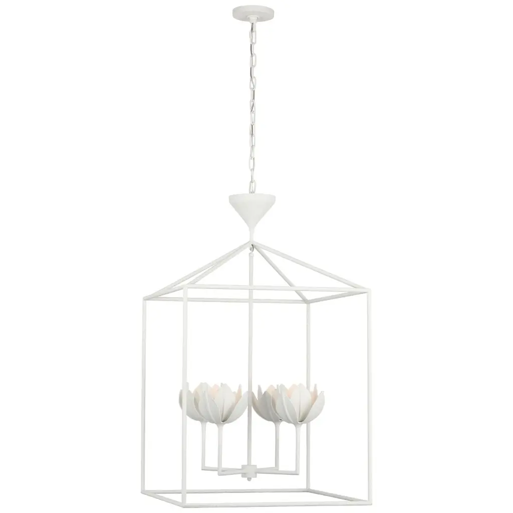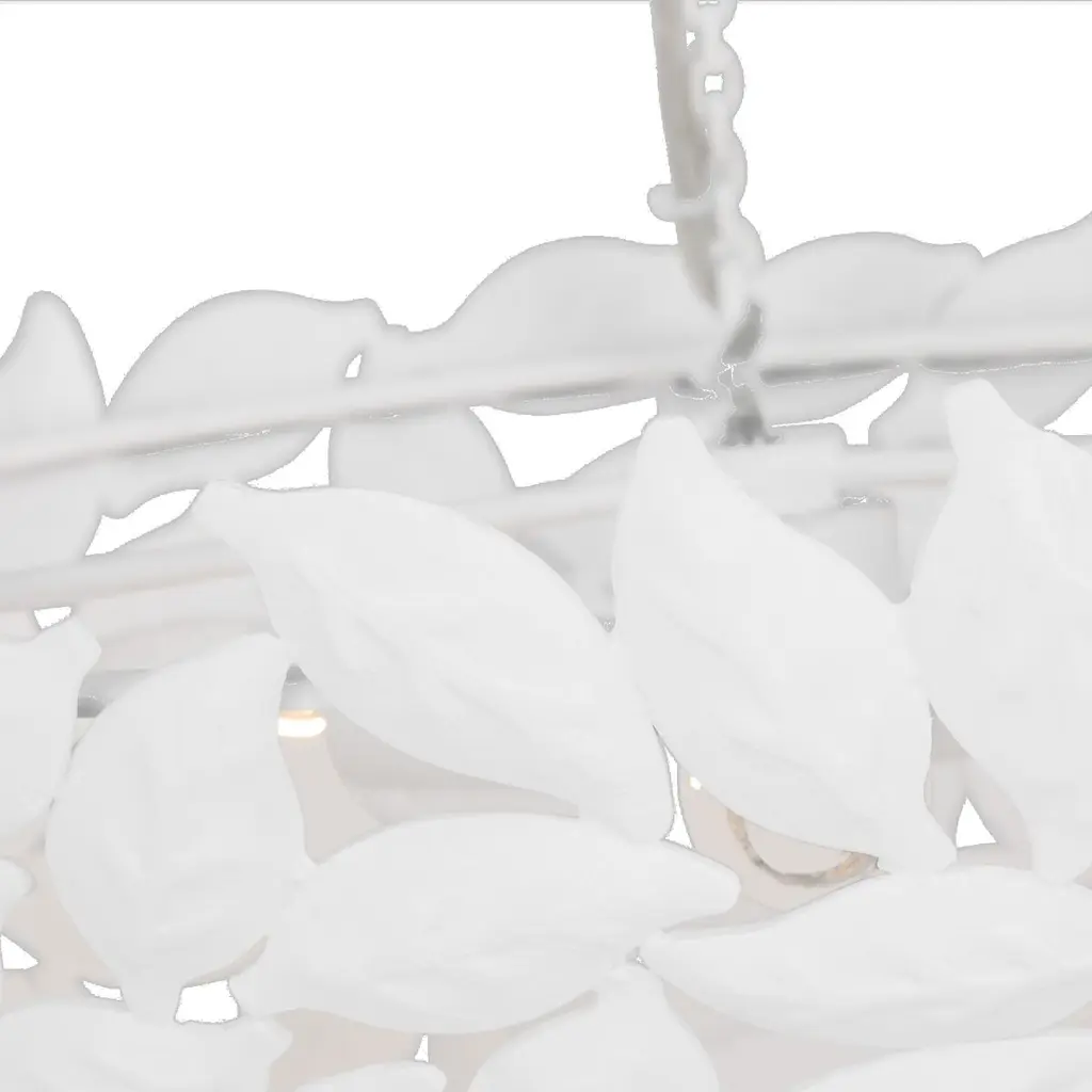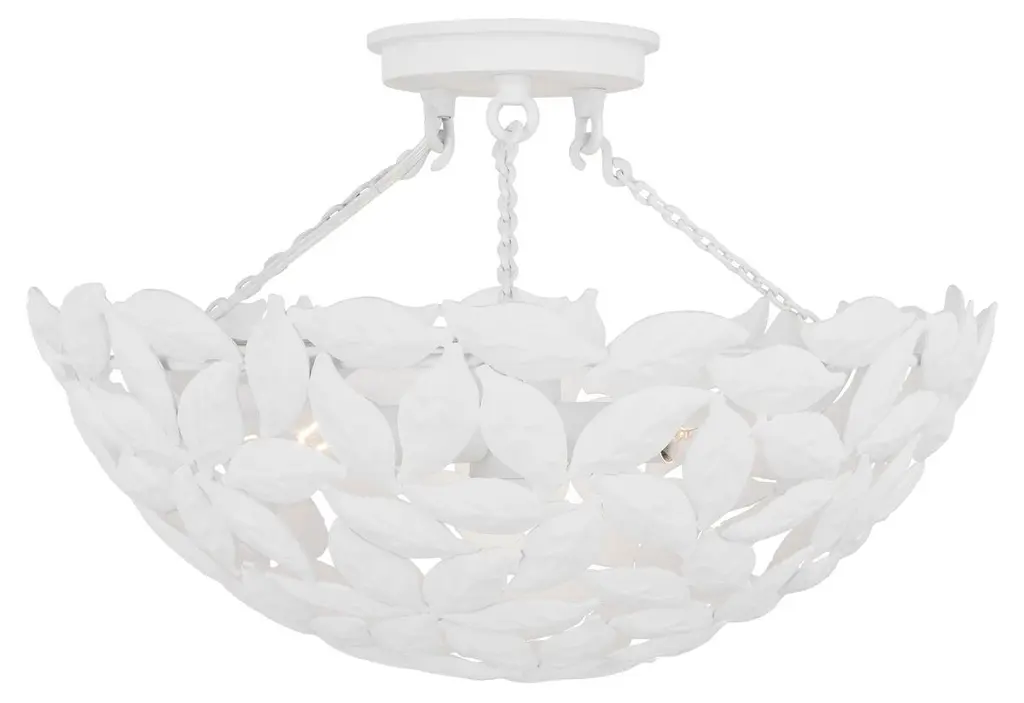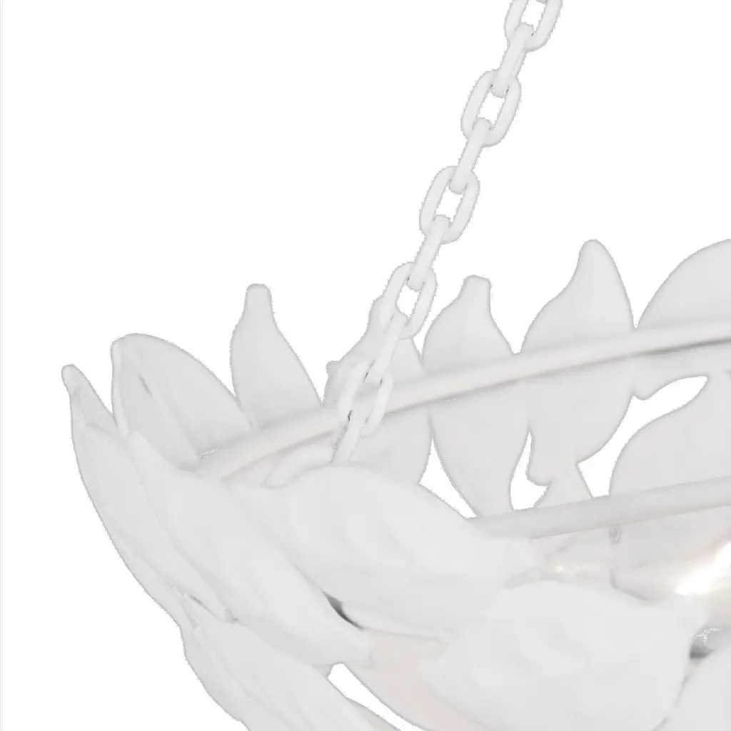 Detailed steel leaves make up the shade of this three-bulb pendant, creating a beautifully diffused glow. In addition to being damp rated, the fixture can be hung on a sloped ceiling.