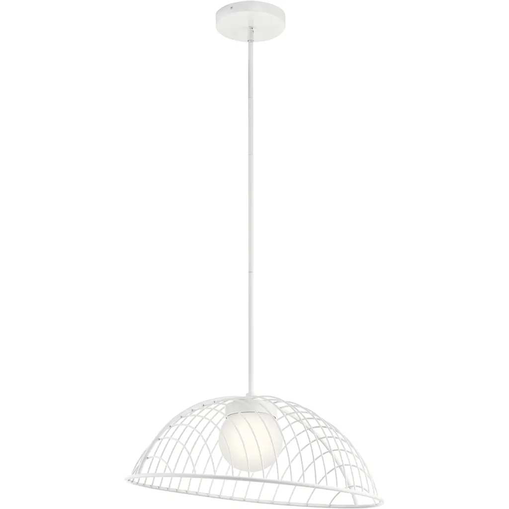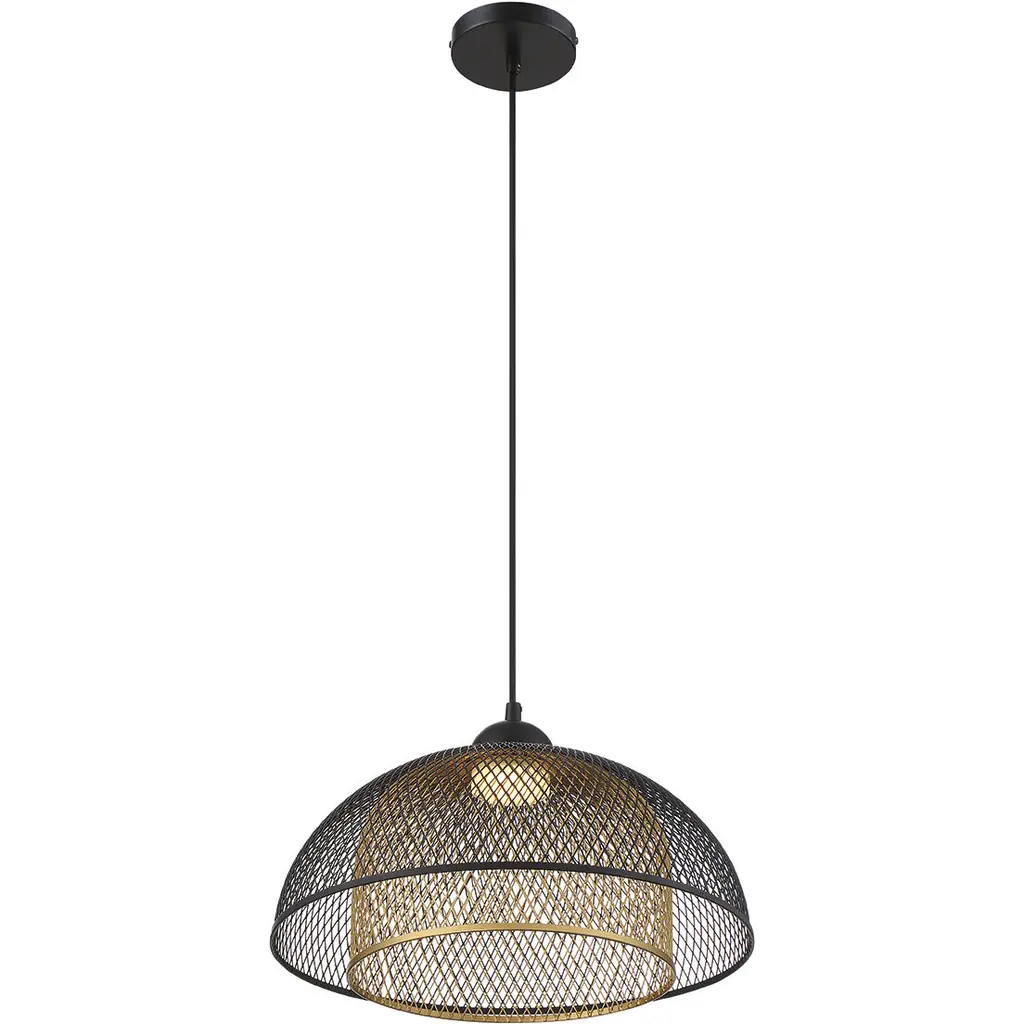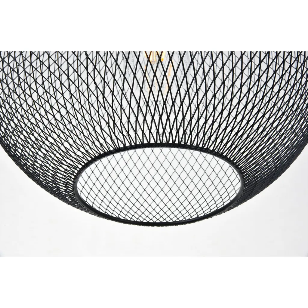 The sophisticated Keller hanging pendant lamp offers a contemporary design and will enlighten your home’s entryway, kitchen, bedroom, den, or rec room. Its distinctive shade, composed of black metal, features a matrix design with the woven appearance of netting. When lit, the lamp radiates vivid shadows throughout the room. The fixture accepts a filament-style incandescent or LED blurb and is supported with a disk-shaped canopy.