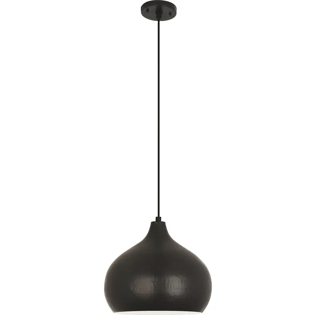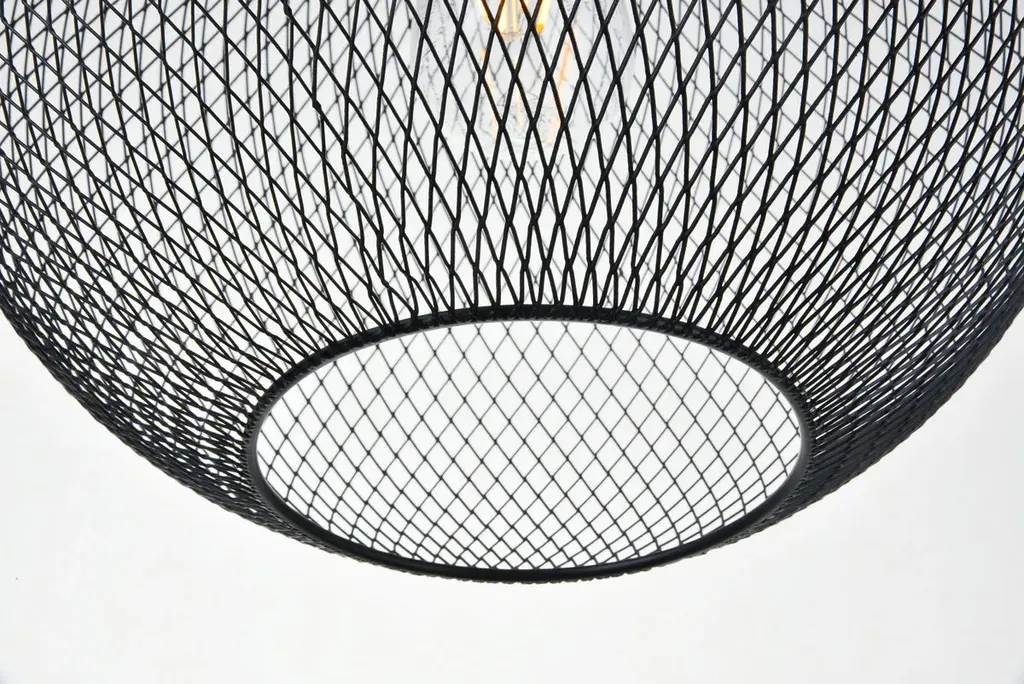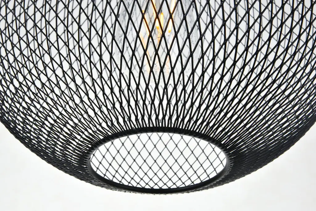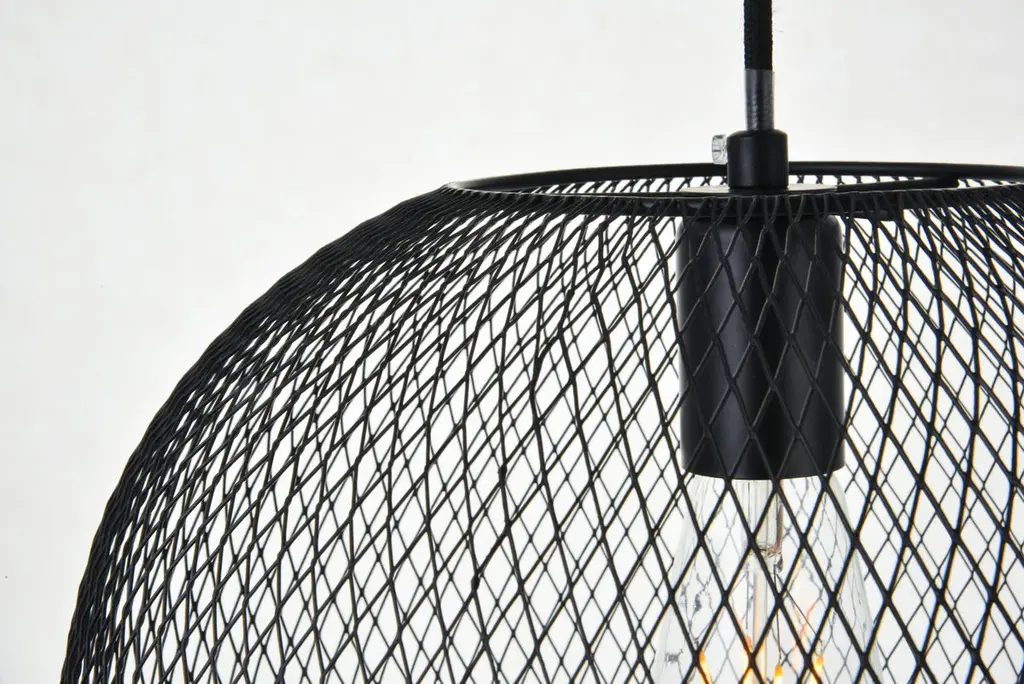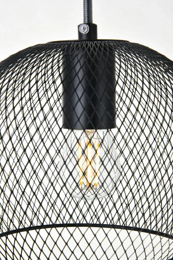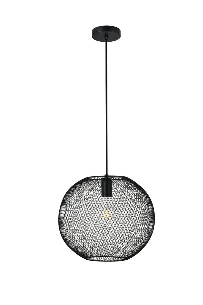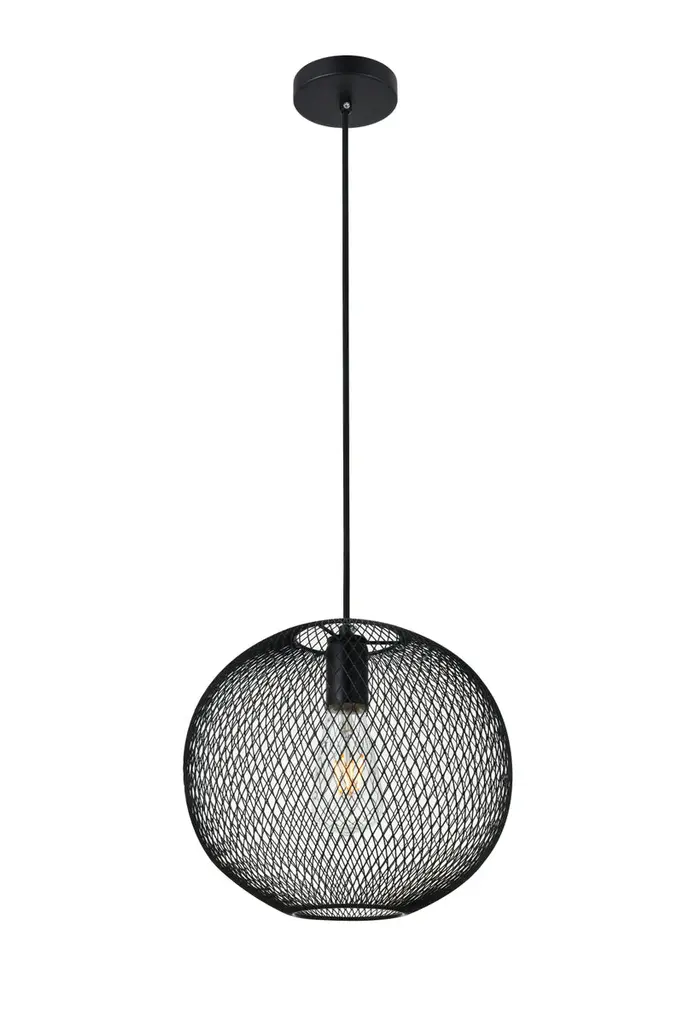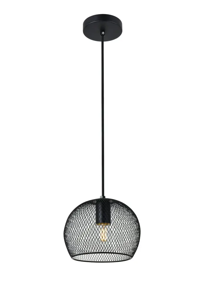 The sophisticated Keller hanging pendant lamp offers a contemporary design and will enlighten your home's entryway, kitchen, bedroom, den, or rec room. Its distinctive shade, composed of black metal, features a matrix design with the woven appearance of netting. When lit, the lamp radiates vivid shadows throughout the room. The fixture accepts a filament-style incandescent or LED blurb and is supported with a disk-shaped canopy.