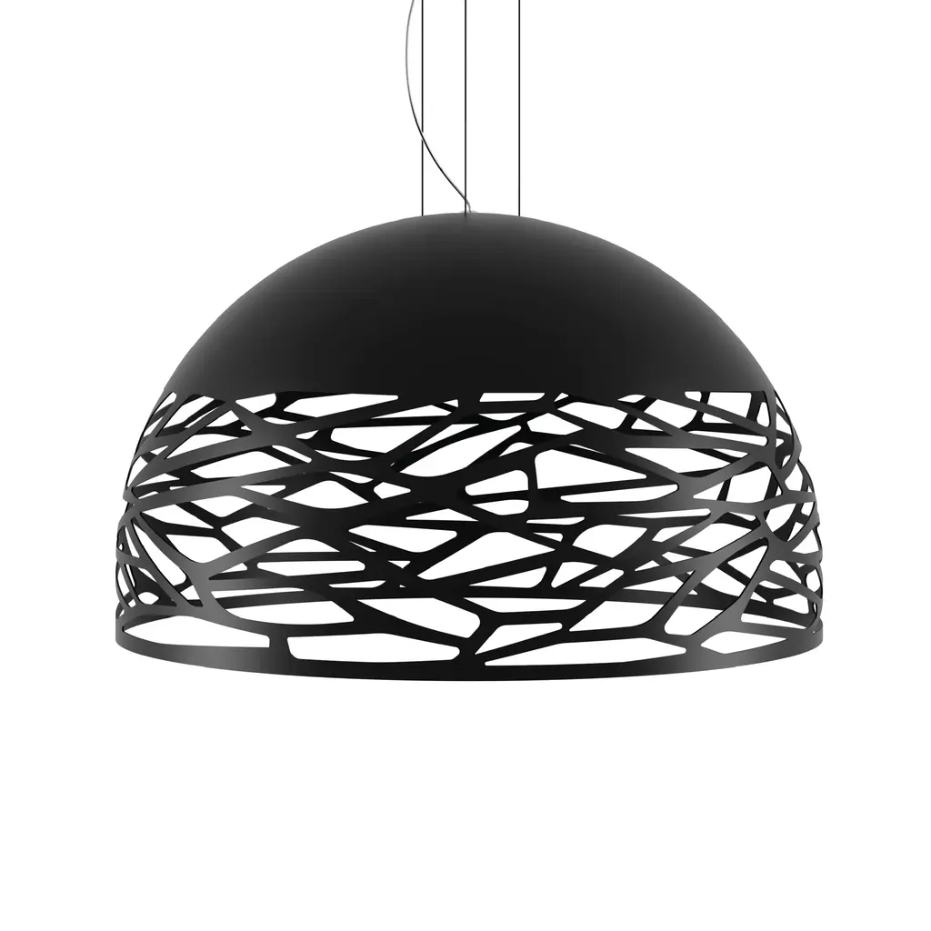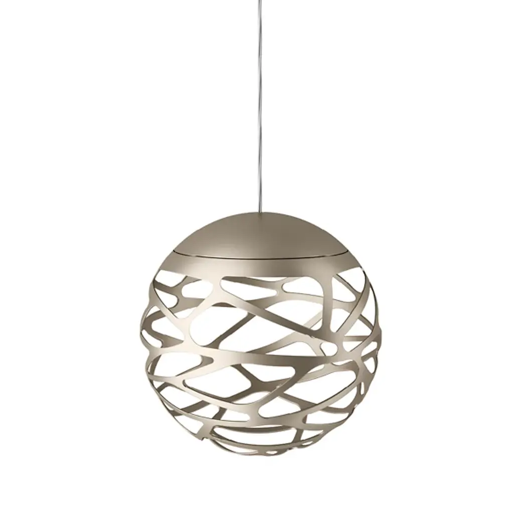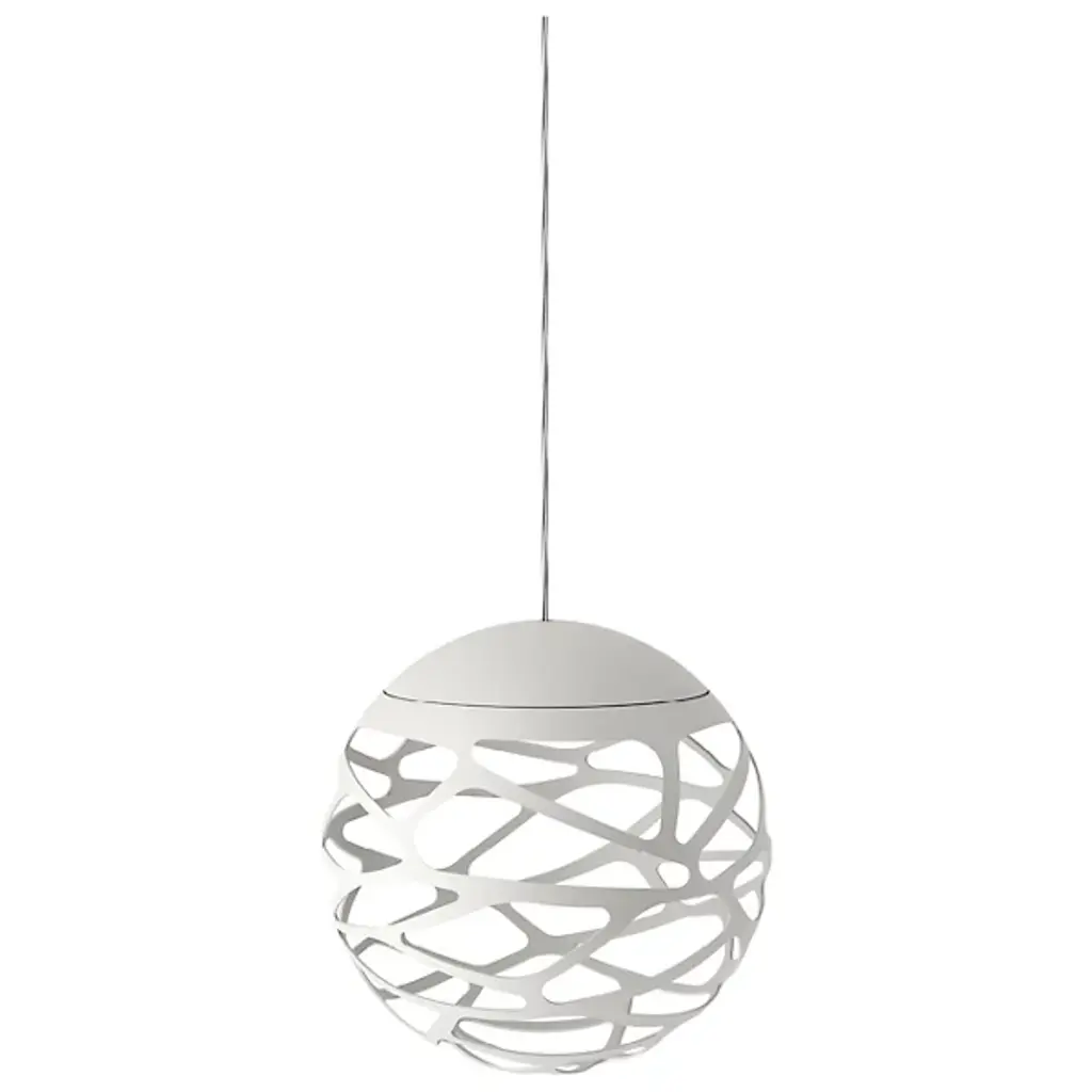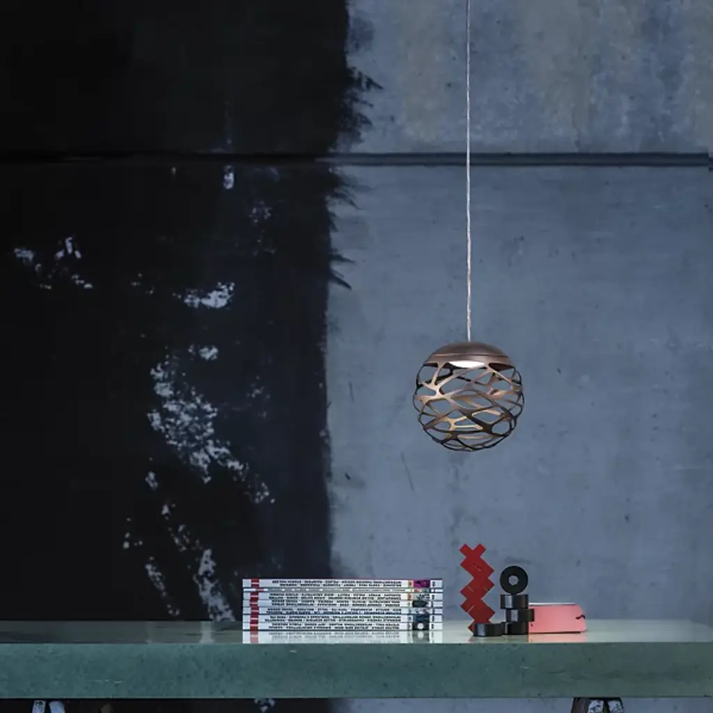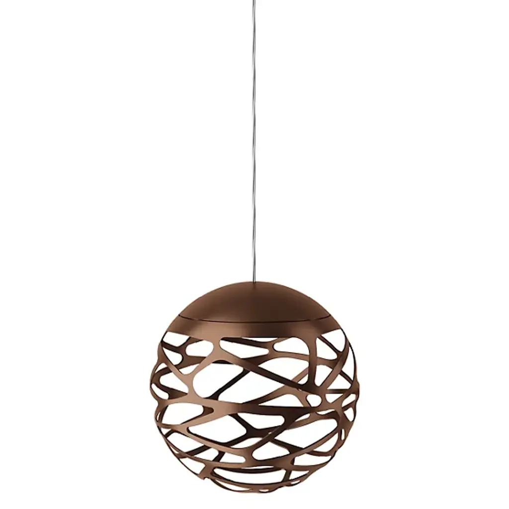 The LODES Kelly Cluster LED Pendant will surely make a statement with cascading orbs elegantly cut and primed for bright illumination. The original Kelly Sphere Pendant is scaled down and multiplied, retaining the same delicate laser cut pattern that populates each metal shell. At the apex of each pendant a white glass diffuser shields the LED light sources, shining uniform down light below. By staggering the pendants at varying lengths further light effects can be achieved, and given a maximum hanging length, there is room for customization.