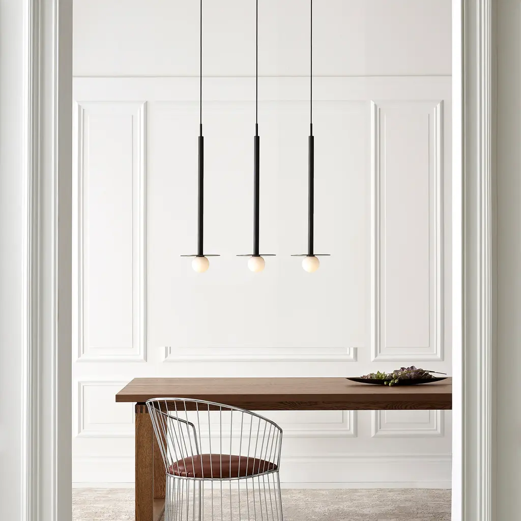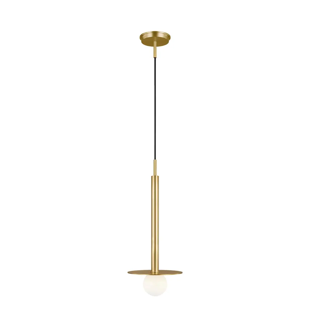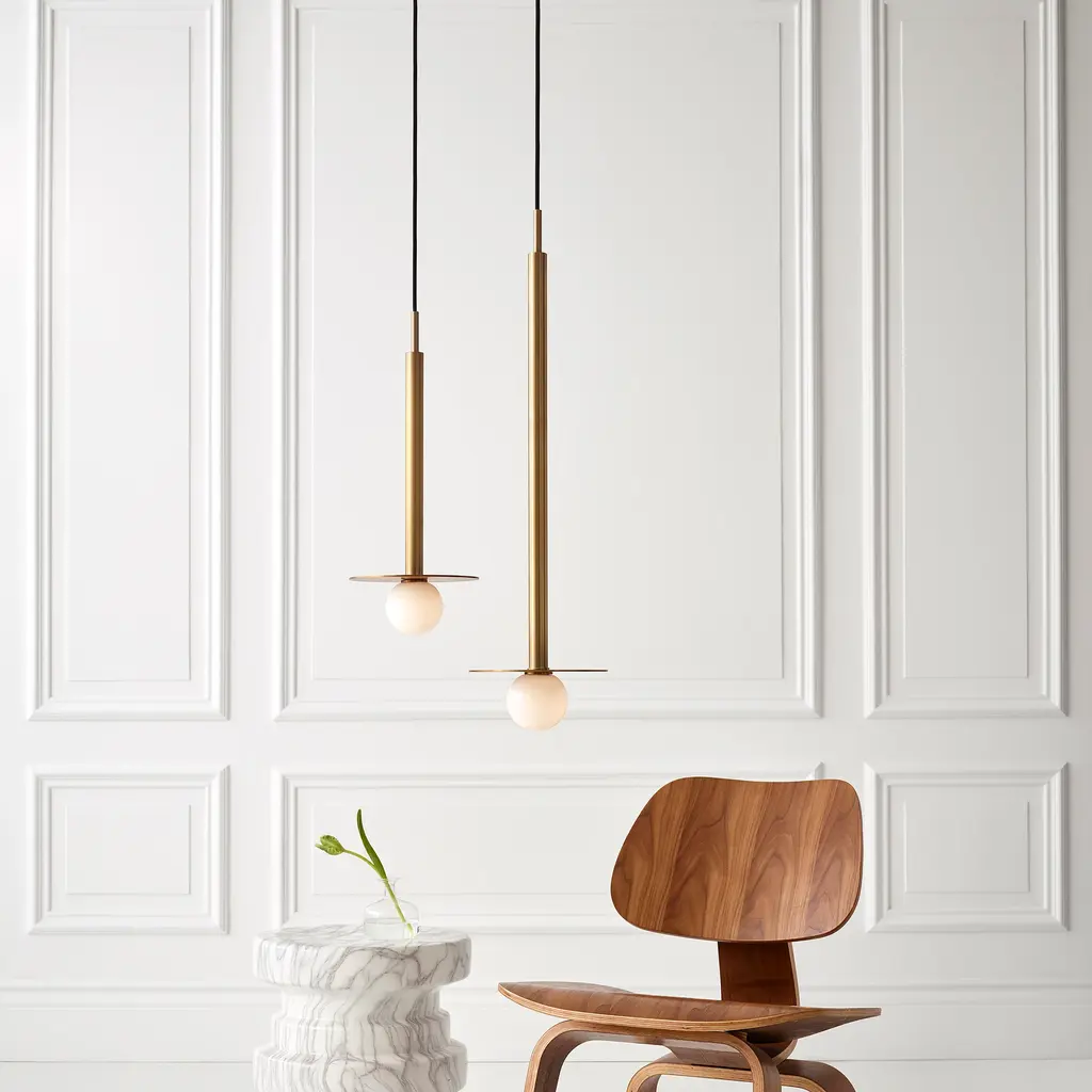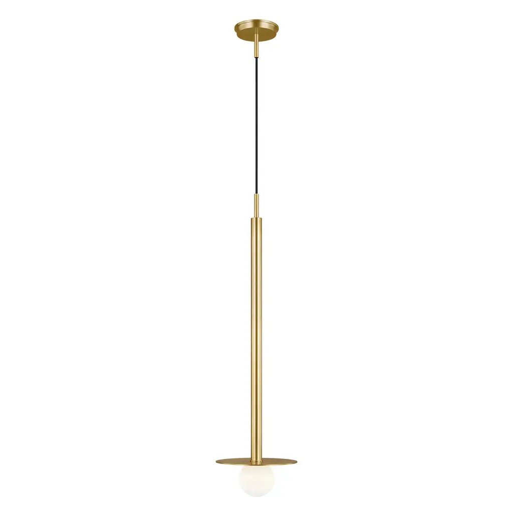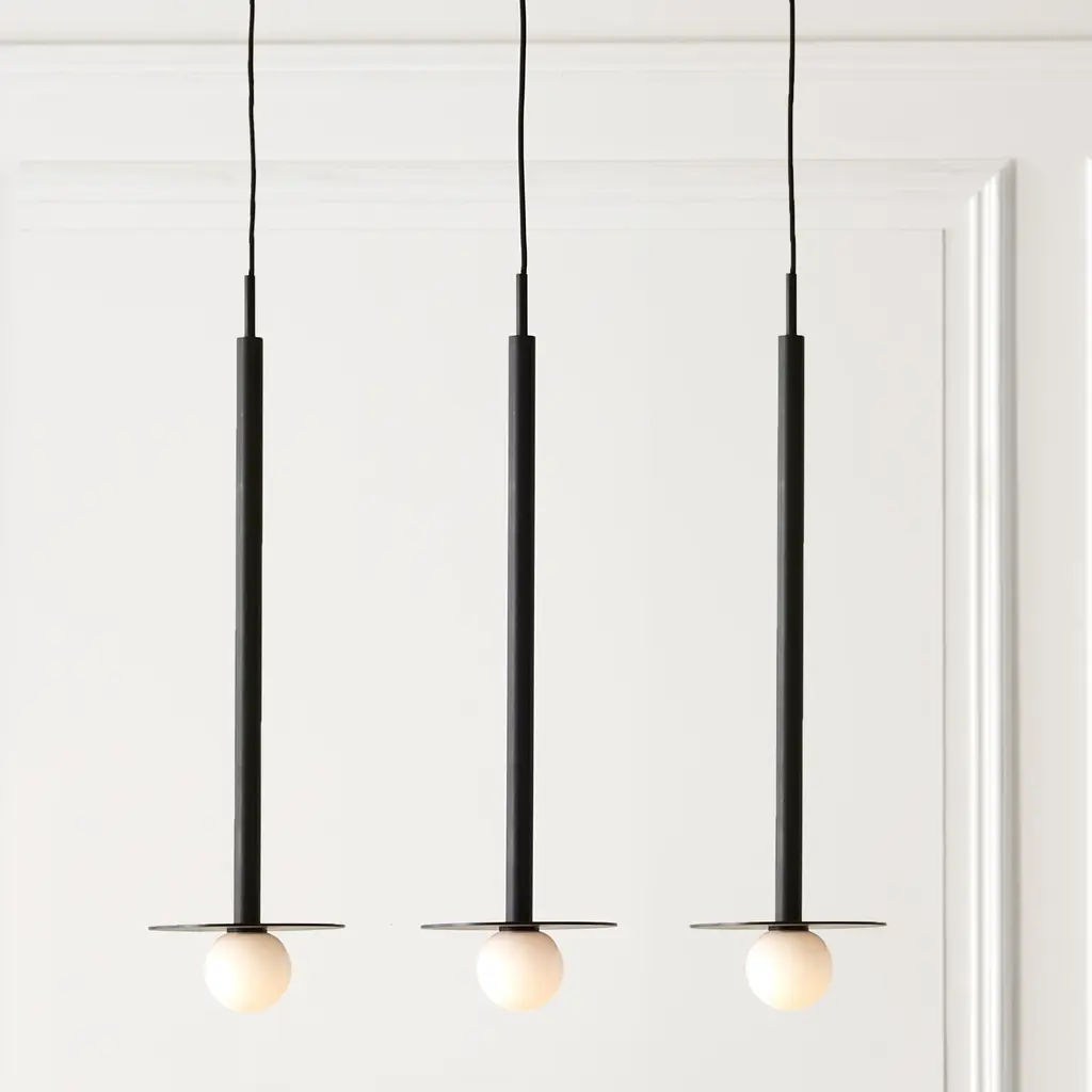 The Kelly Wearstler Nodes Pendant Light from Visual Comfort & Co evokes sophistication and class with its minimal yet bold design. The midnight black or burnished brass fixture radiates light from milk glass globes set against removable metal discs, creating an exclusive artistic ambiance. The cast canopy and black fabric cords add a tasteful touch of luxury, while the option to use the pendant without the discs allows you to customize the look for your space. Highlights