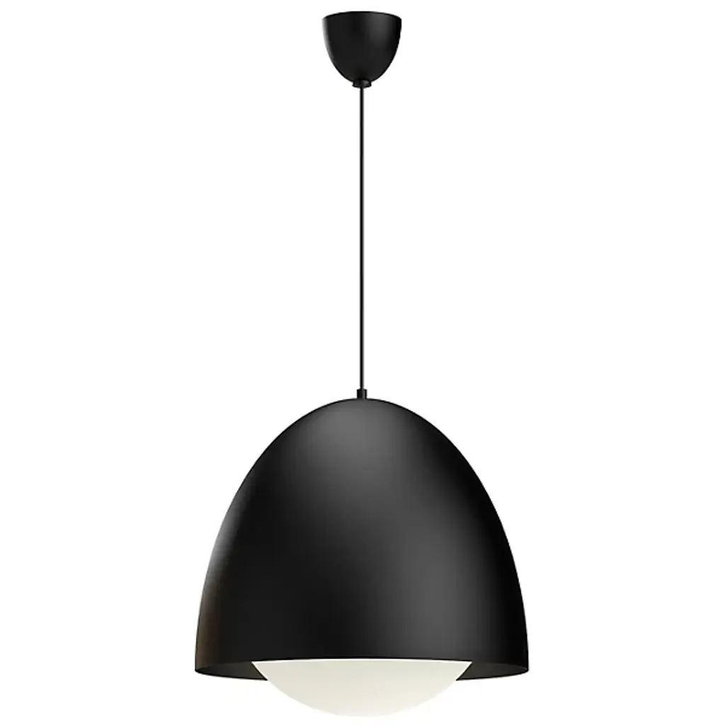Bring an elegant appeal to your inside spaces with the Kenji Pendant from Alora Mood. A simple design with modish modern lines, it uses a dome-shaped ceiling mount and slim cable to suspend strong lamping below, focused by a large dome shade in steel and gentled by a rounded glass diffuser that encircles it. This layered shade assembly pours out an even ambiance below, enhanced by sparkles of reflected light from the shade interior.