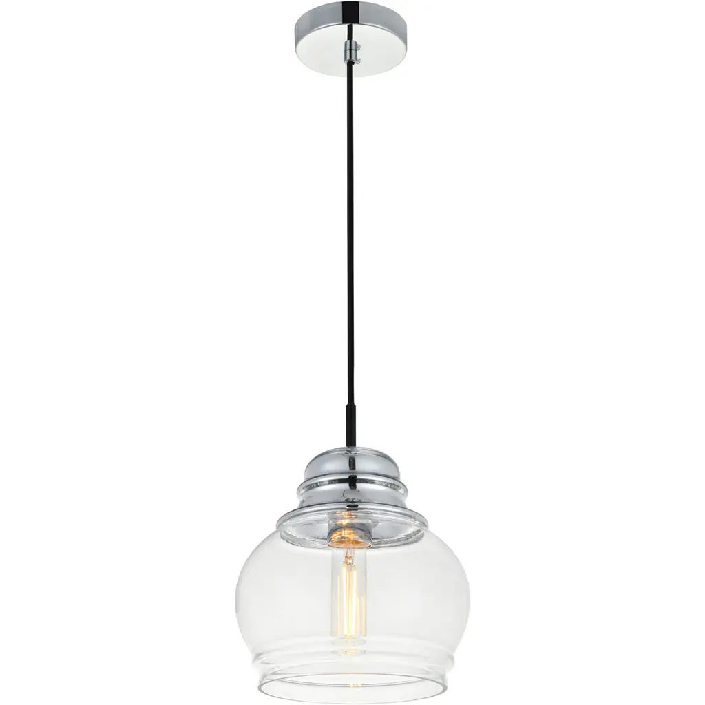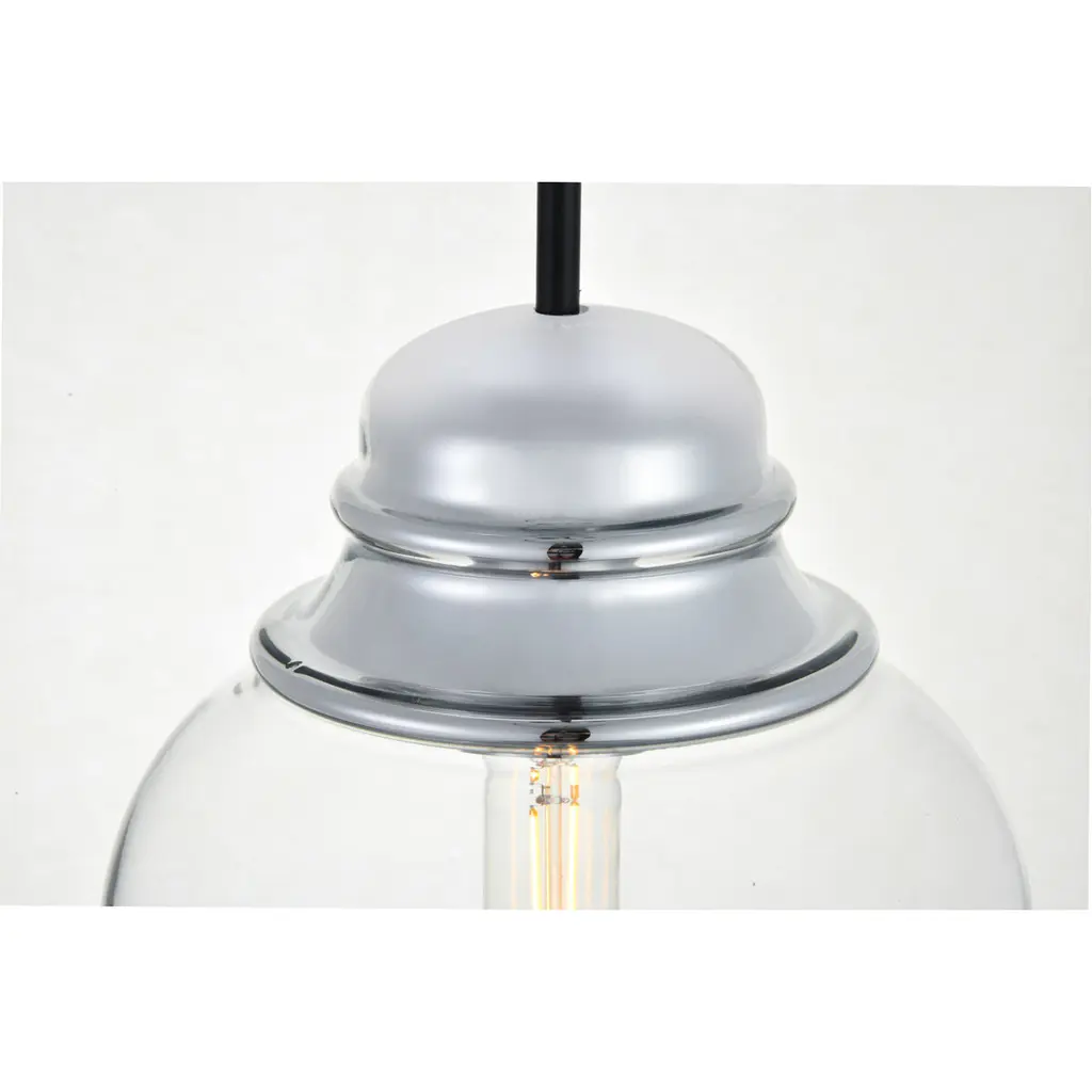 The small, but mighty Kenna collection offers sleek pendant lamps that will add a powerful accent to your urban, industrial, or transitional décor. A chrome and clear sugar pot shade holds one incandescent or LED bulb (not included) that will illuminate your interior space. This light’s chrome and clear hardware finish adds to the interest of the piece with strong vertical lines. A chrome “top hat” caps off the shade and delights the eye with its elegant concentric circles. Brighten your kitchen island, bathroom, entryway, or den with this versatile fixture. You may adjust the height to your desired length between 15 and 68 inches.