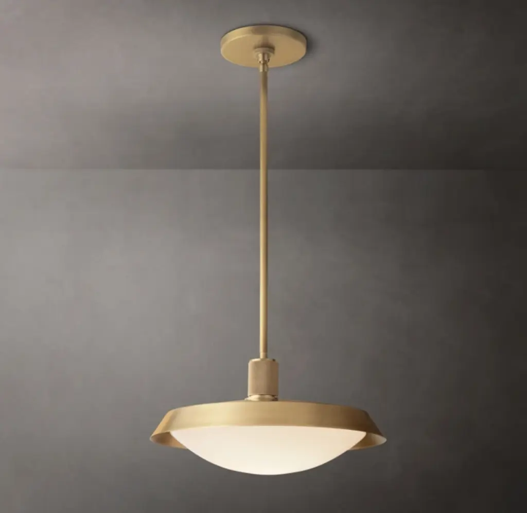 Designer Ian K. Fowler's take on the traditional barn lamp celebrates the minimalist aesthetic of midcentury design. A juxtaposition of sleek lines and luxe materials, the solid brass construction and knurled detailing reveal its industrial roots. In contrast, a milk glass shade gently diffuses the light, casting a warm glow when illuminated. SHOP THE ENTIRE COLLECTION