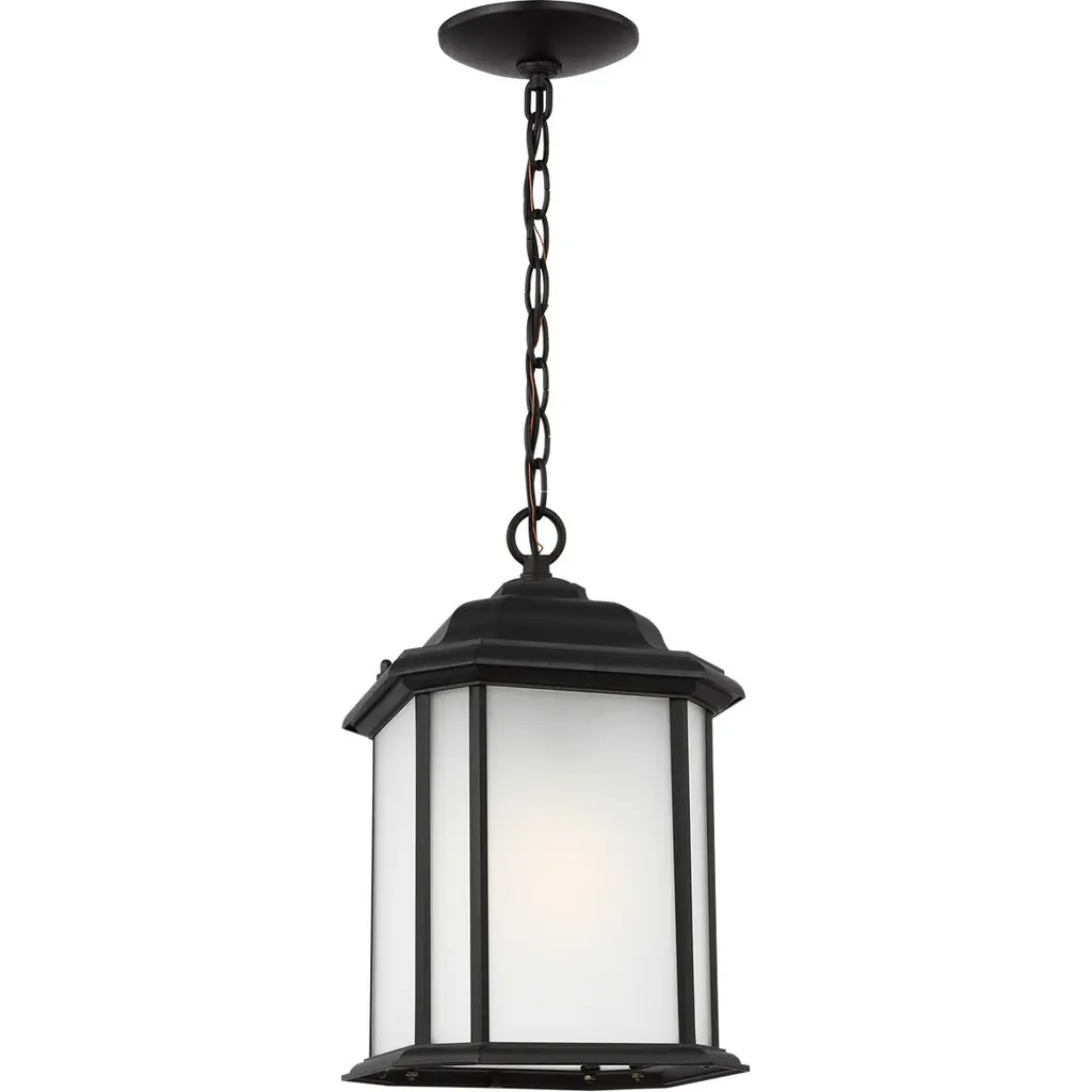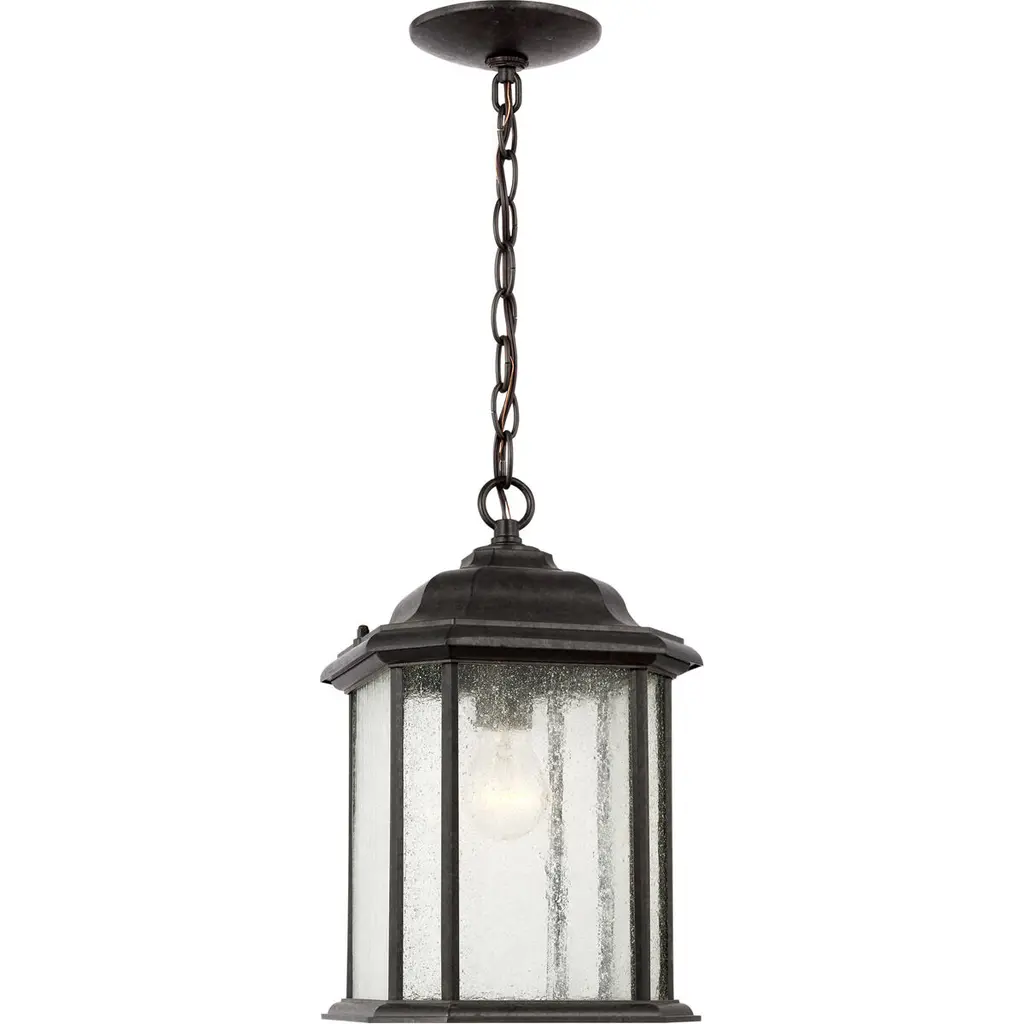 The Kent one light outdoor pendant fixture in black is an ENERGY STAR½ qualified lighting fixture that uses LED bulbs to save you both time and money. Kent outdoor lighting fixtures by are crafted in die-cast aluminum for added durability to withstand harsh weather conditions. The traditional styling inspired by antique gas lanterns is offered in either Oxford Bronze with Clear Seeded glass, Black finish with Clear Beveled glass, and both finishes with Satin Etched glass. The assortment includes small and large one-light outdoor wall lanterns (with a flat bottom), as well as an additional design of small and large one-light outdoor wall lanterns (with finial on top and bottom) which can be mounted up or down, a one-light outdoor semi-flush convertible pendant and a one-light outdoor post lantern. Both incandescent lamping and ENERGY STAR-qualified LED lamping (for those fixtures with the Satin Etched glass) are available for most of the fixtures, and some can easily convert to LED by purchasing LED replacement lamps sold separately.