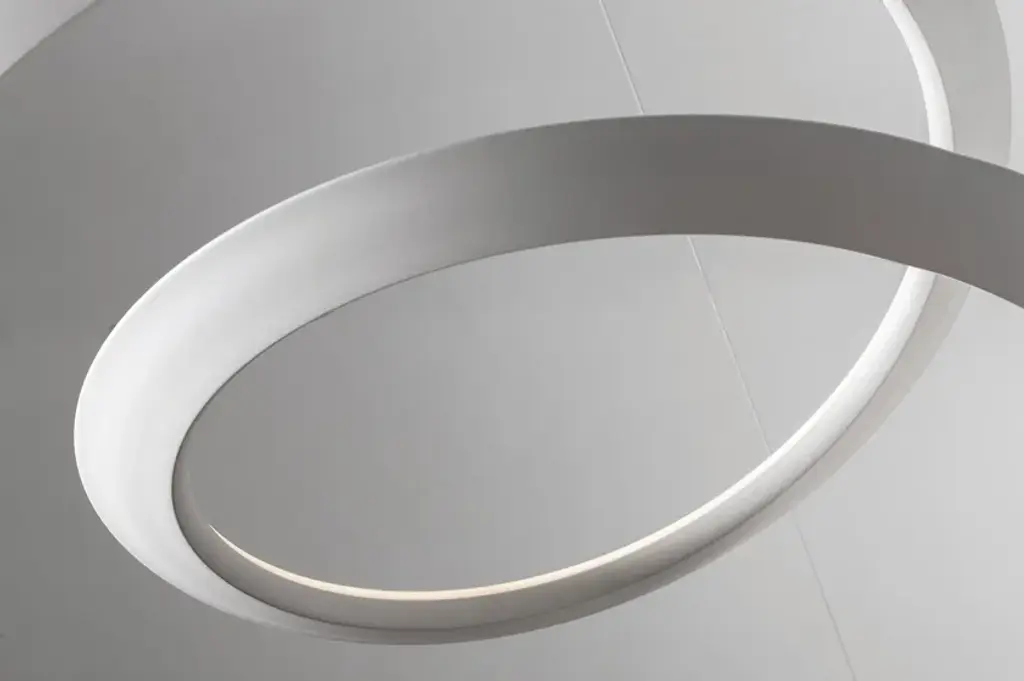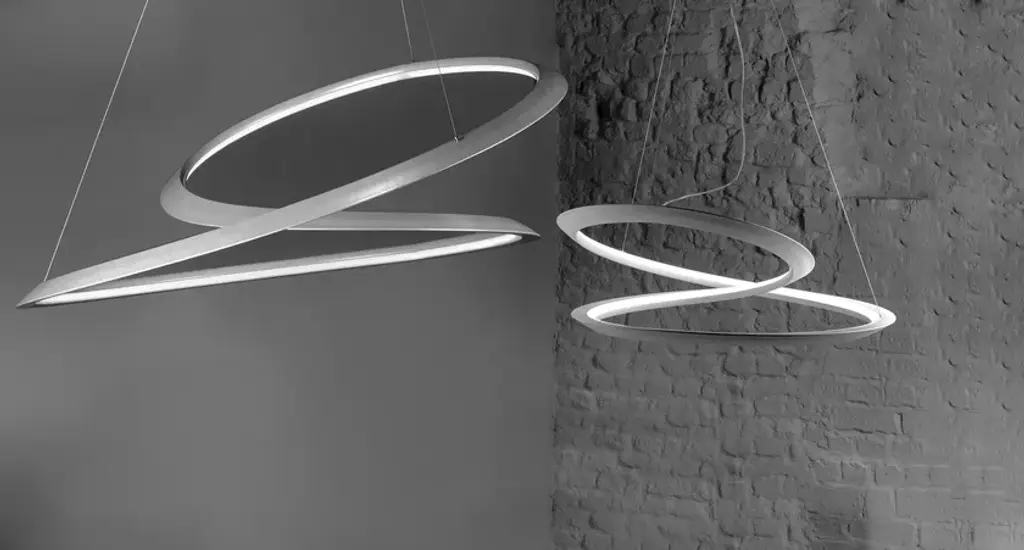 Small version of the Kepler lamp. Suspension lamp in extruded aluminum powder coated. Available in uplight and down light versions in white, black and the new gold finish. The continuous line is made through a three-dimensional process of extruded aluminum, designed based on the geometric principle of the Moebius strip.Source: Linear LEDTotal power: 77WEmission: diffused downlight/uplightSwitching: dimmable 1-10VTension: 110/240VColor temperature: 2700K / 3000KLuminous flux: 4000lm (luminous output)Typ cri 85Energy class: A+Notes cable: lenght 2,5m; adjustable cable length minimum 0,4mNet lamp weight: 6 KgColors:whiteblackgold painted