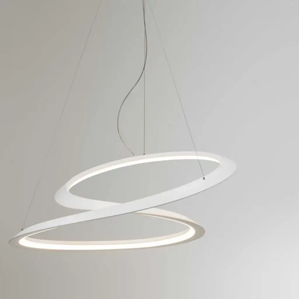 The Kepler Minor LED Pendant by Nemo is a design from Arihiro Miyake. Inspired by the geometrical principles of the Möbius strip, the elegant, endless, ribbon-like form of this piece turns in upon itself, creating an areal spiral that offers upward or downward cast illumination. Simple yet stunning, the bold extruded aluminum body is made through a three-dimensional machining process and lends a dynamic, elegant, and engaging look to spaces.