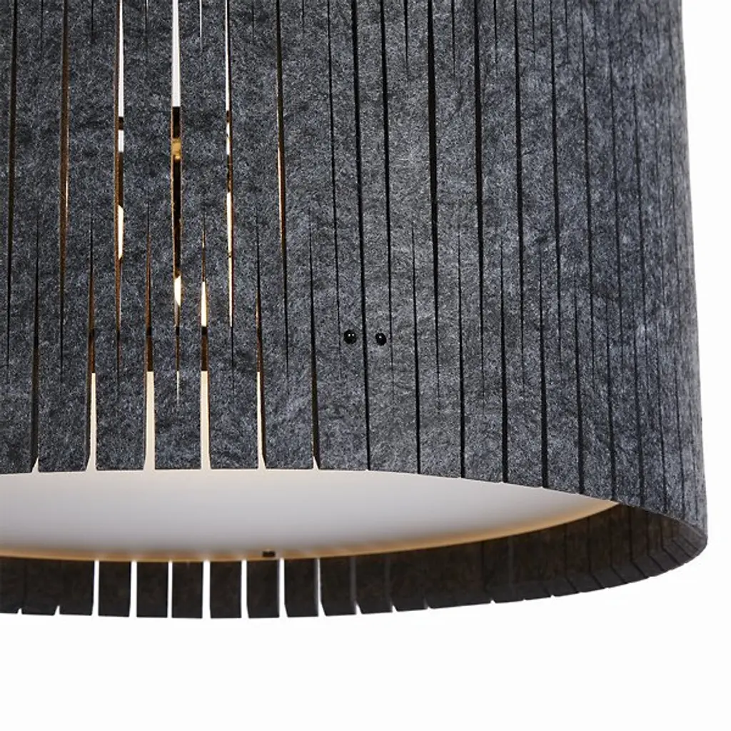 Let your imagination take flight with the Kerflights Drum Pendant from Graypants, a floating fixture that adds an inspired contemporary presence to inside spaces. Designed by Graypants (Seattle) and precision-built by hand in the USA, its powder-coated steel wire frames give each lamp a sturdy structure, pouring out inner light through an acrylic diffuser, while Kerf patterns cut into the felt slats on its sides cast a unique pattern of light and shadow onto walls and table surfaces nearby.