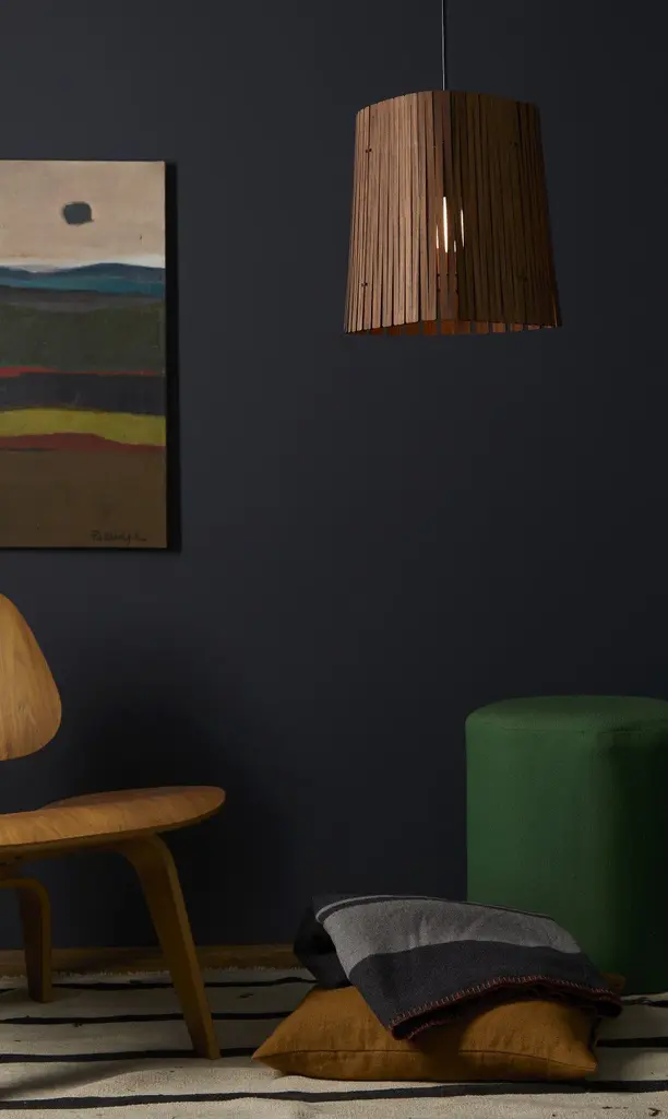 Thick wood panels compliment the sharp new black frame and cord set. Inspired by tried and true handcrafting techniques, the Kerflights series is precision built to accommodate any situation. Durable powder-coated steel wire frames provide a distinct shape and character for each lamp. The shades are crafted from FSC-certified high quality plywood with a unique kerf pattern cut into the panels allowing for intriguing patterns to be cast onto walls and table surfaces. The magic in the Kerflights series lies within the flexibility of the design. The shade panels are swappable and reversible, allowing for future possibilities over their long lives.