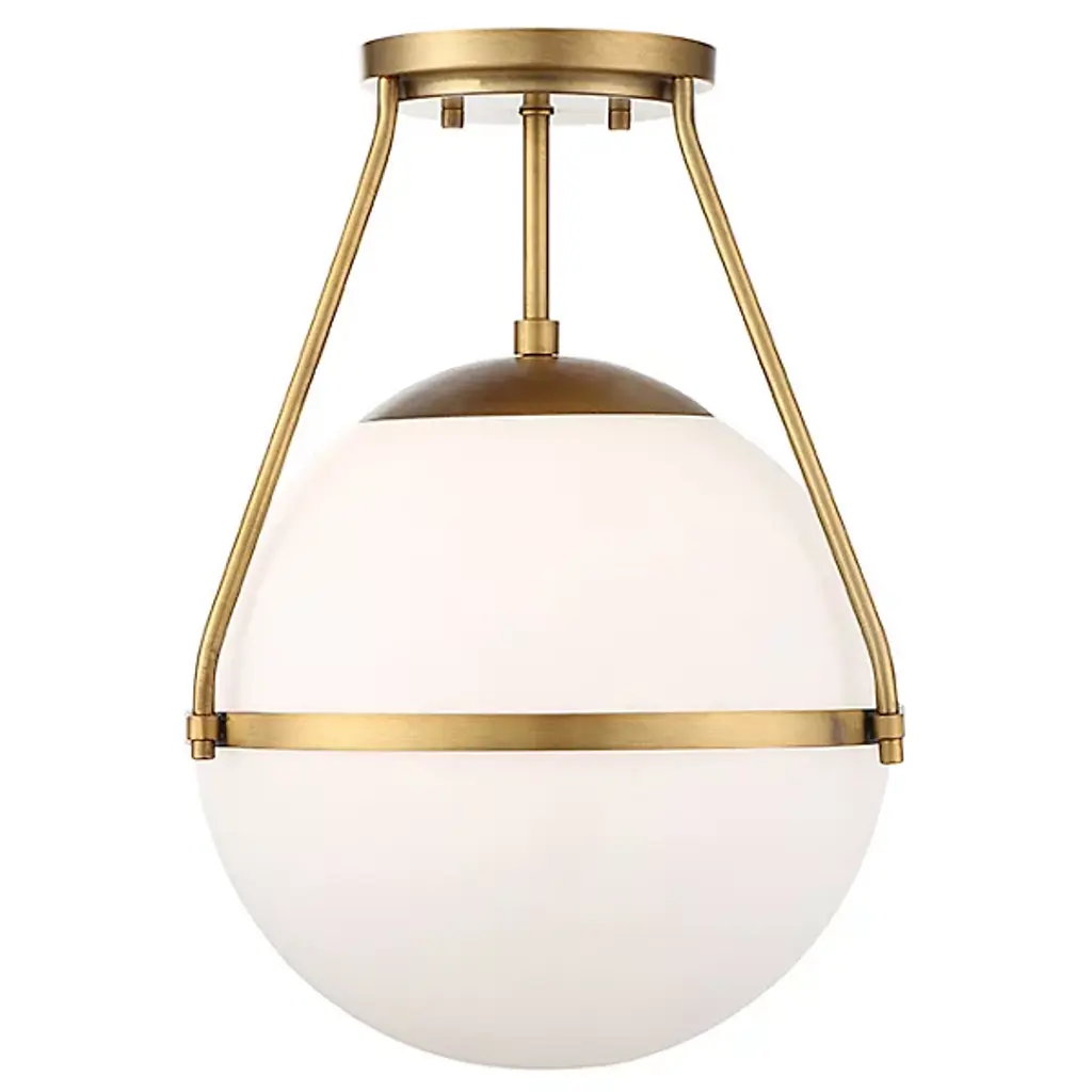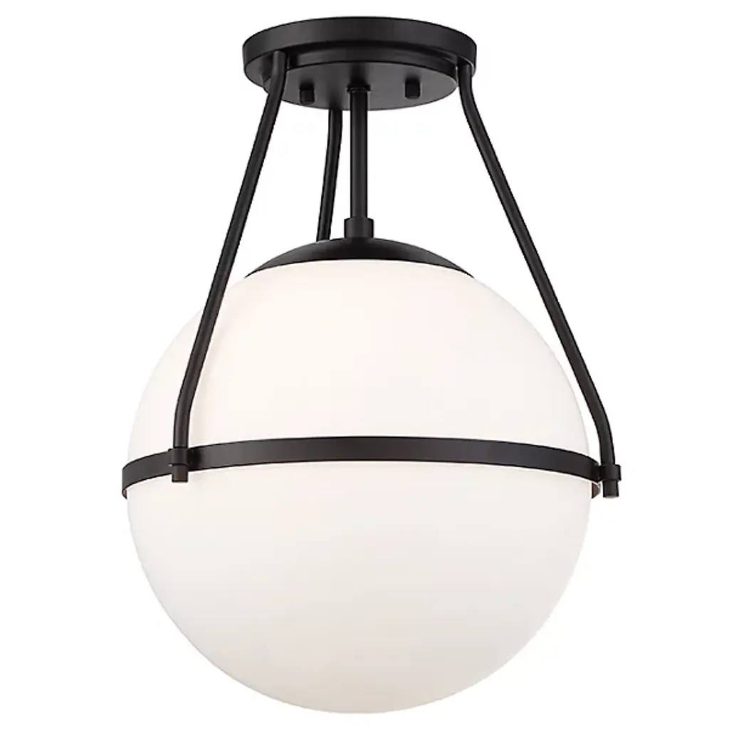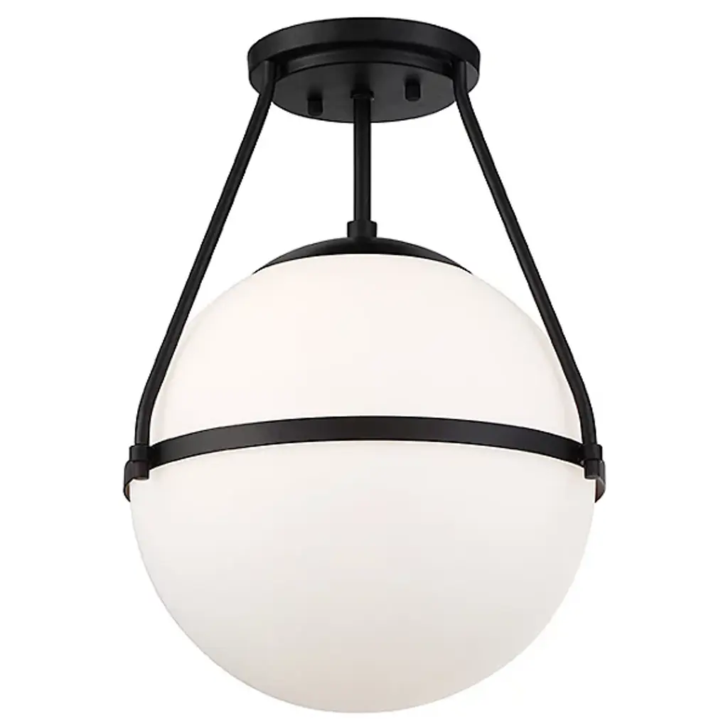 Glowing reviews for form and function. The Kerry Semi-Flushmount by Alder & Ore has a retro vibe yet looks current. Its White Opal glass globe shade evokes mid-century modern designs and offers comfortable diffused illumination. With mounting hardware plus decorative banding and rods done in a stylish metal finish, this transitional ceiling fixture creates a cohesive décor look as it lights up a space.