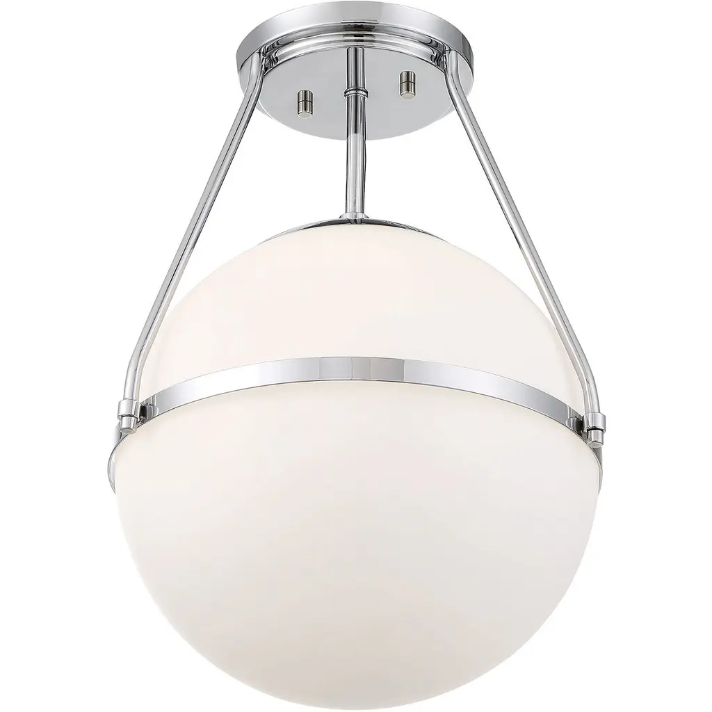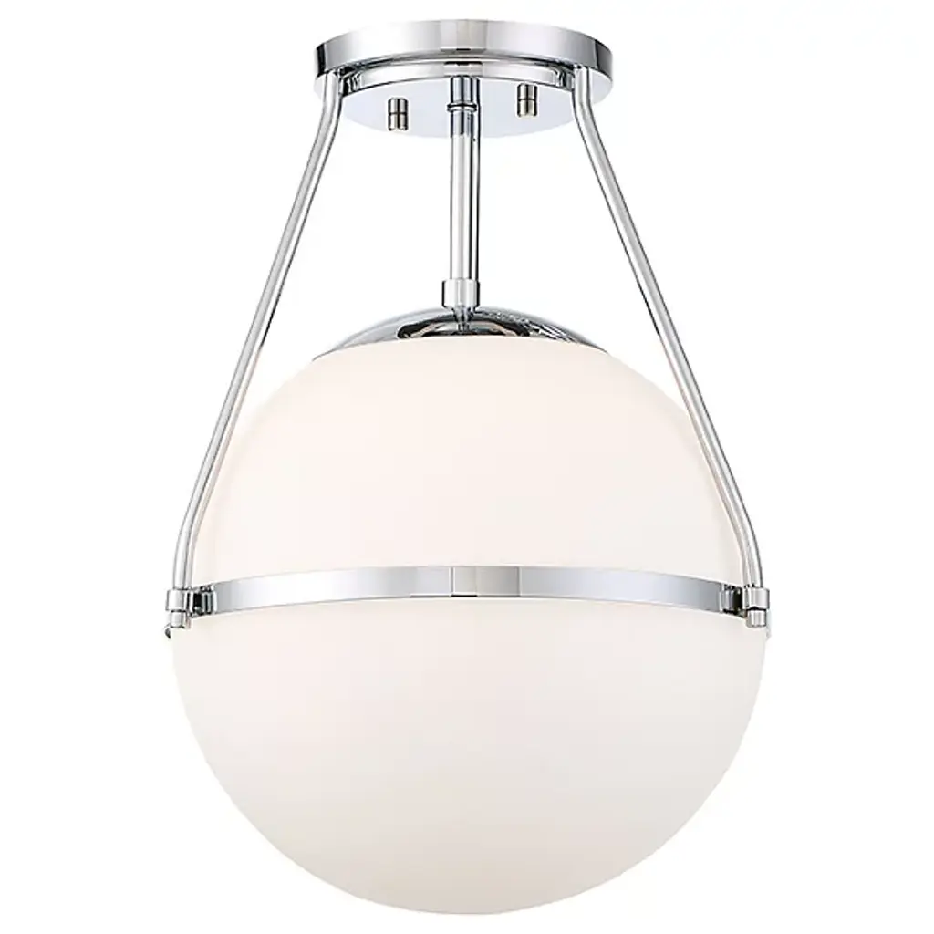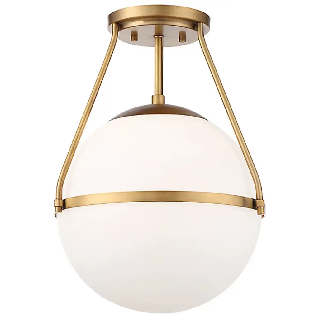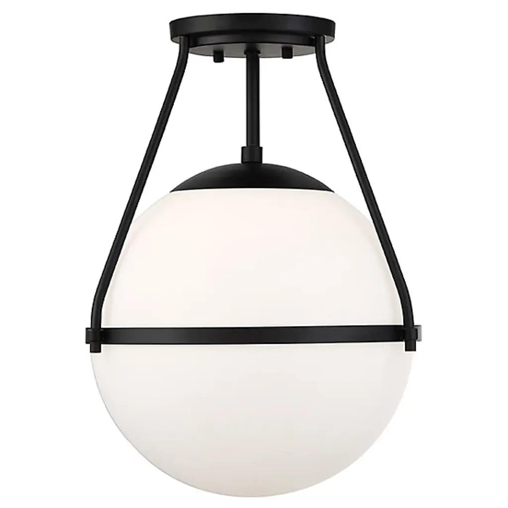 Glowing reviews for form and function. The Kerry Semi-Flushmount by Alder & Ore has a retro vibe yet looks current. Its White Opal glass globe shade evokes mid-century modern designs and offers comfortable diffused illumination. With mounting hardware plus decorative banding and rods done in a stylish metal finish, this transitional ceiling fixture creates a cohesive décor look as it lights up a space.