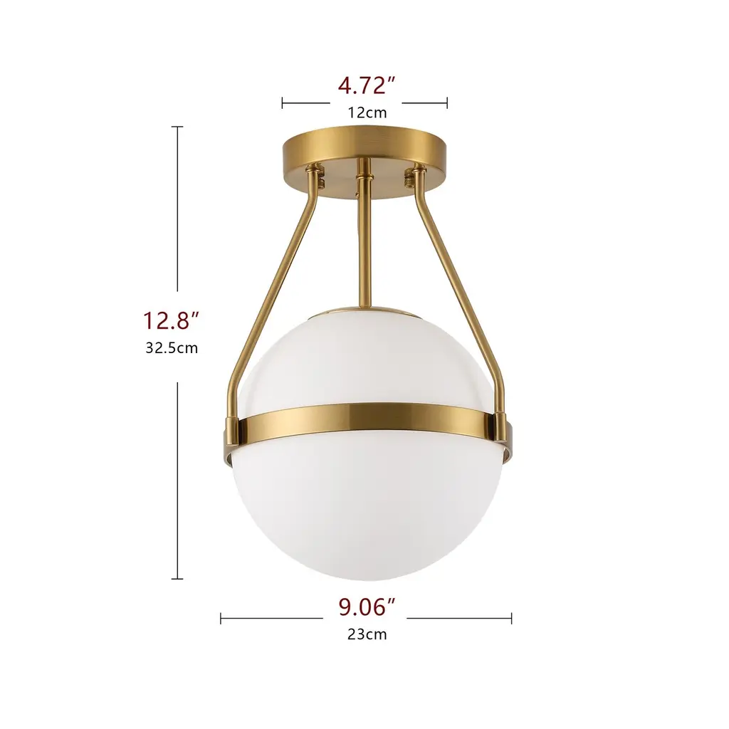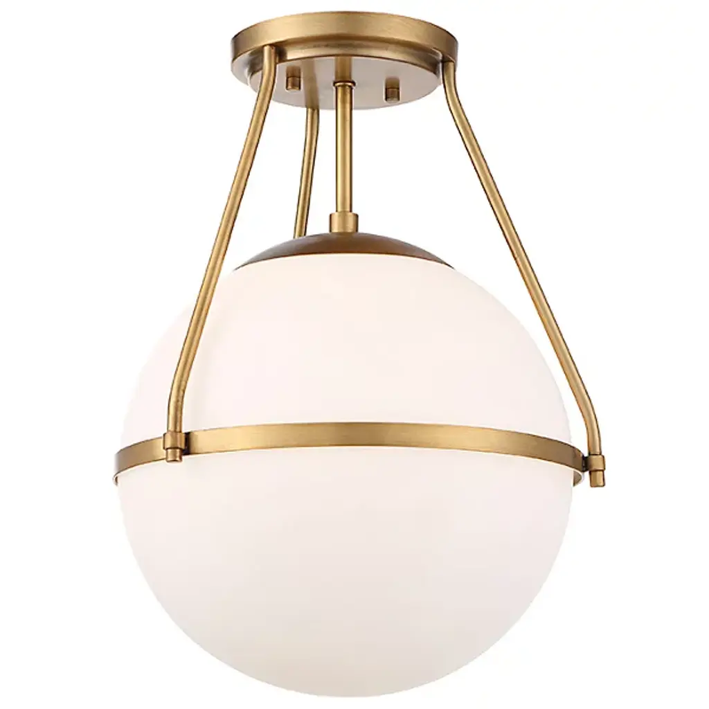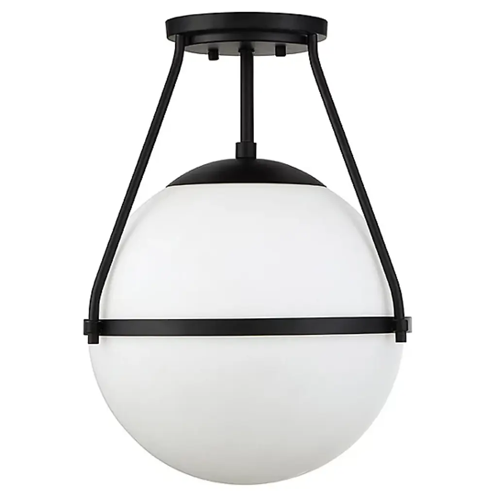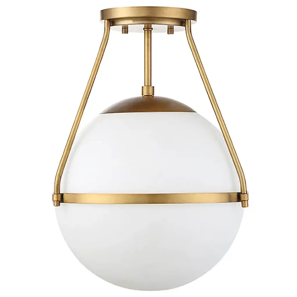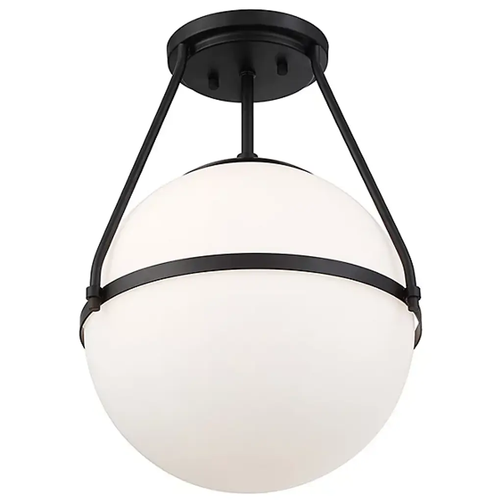 Glowing reviews for form and function. The Kerry Semi-Flushmount by Alder & Ore has a retro vibe yet looks current. Its White Opal glass globe shade evokes mid-century modern designs and offers comfortable diffused illumination. With mounting hardware plus decorative banding and rods done in a stylish metal finish, this transitional ceiling fixture creates a cohesive décor look as it lights up a space.