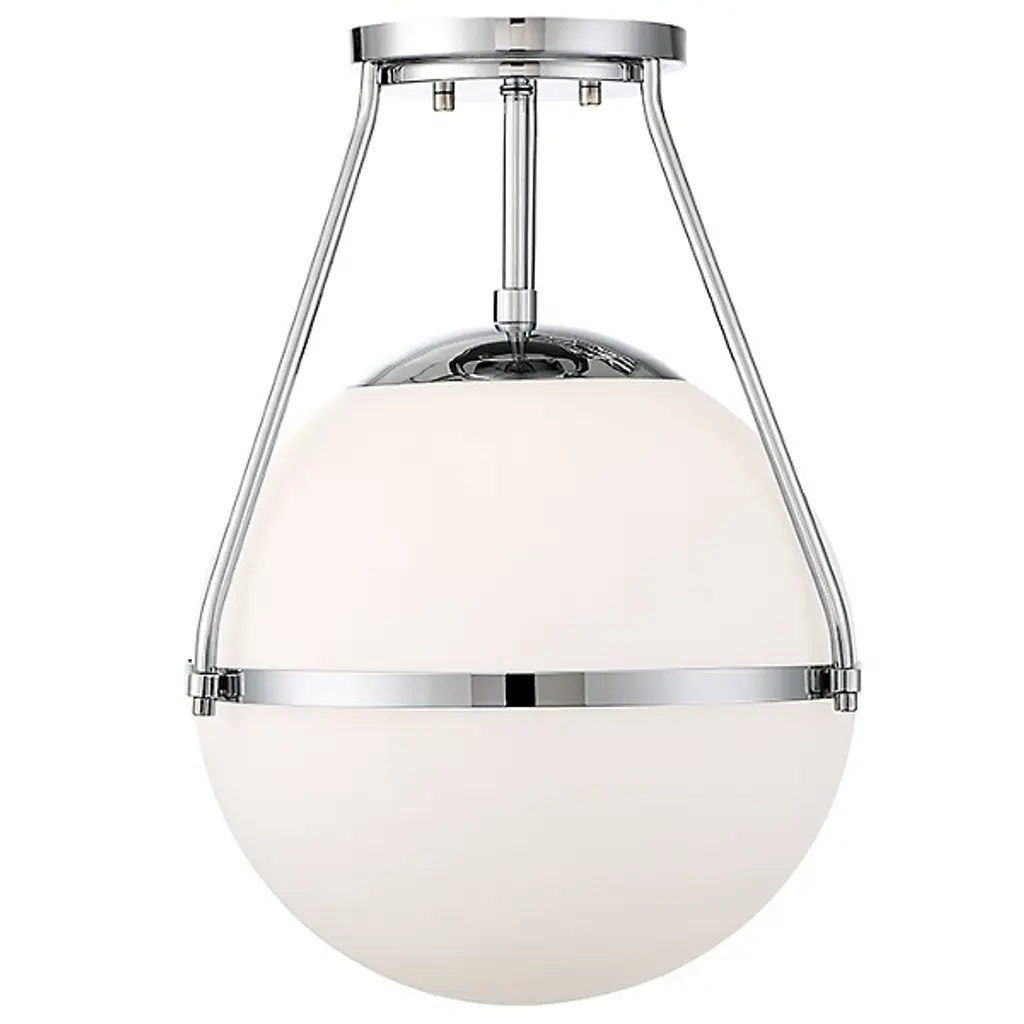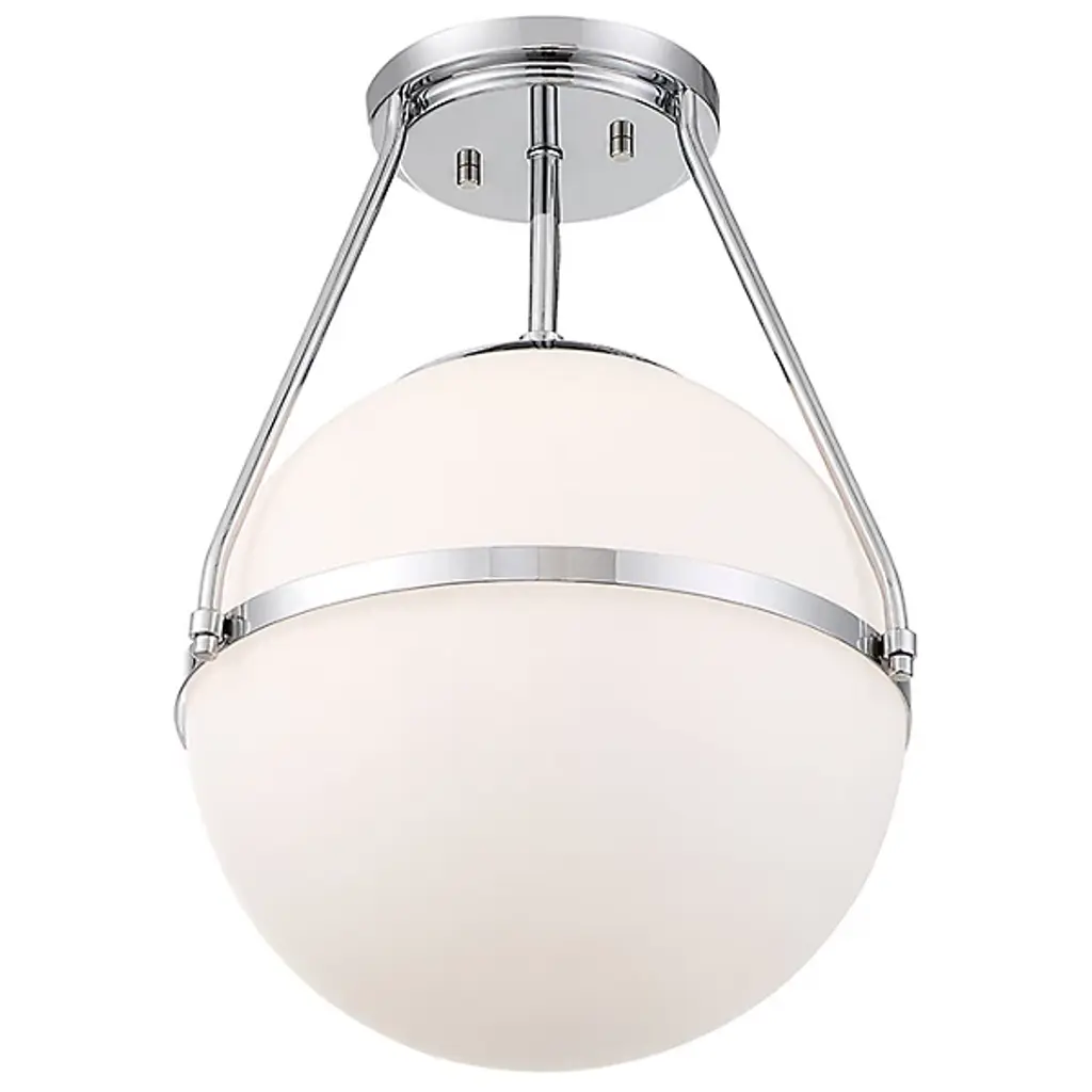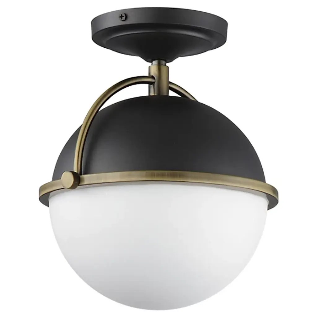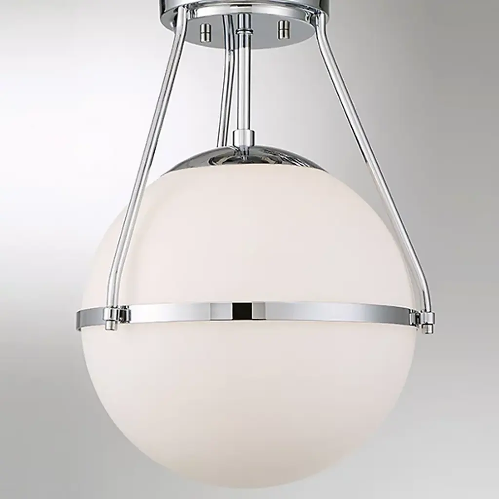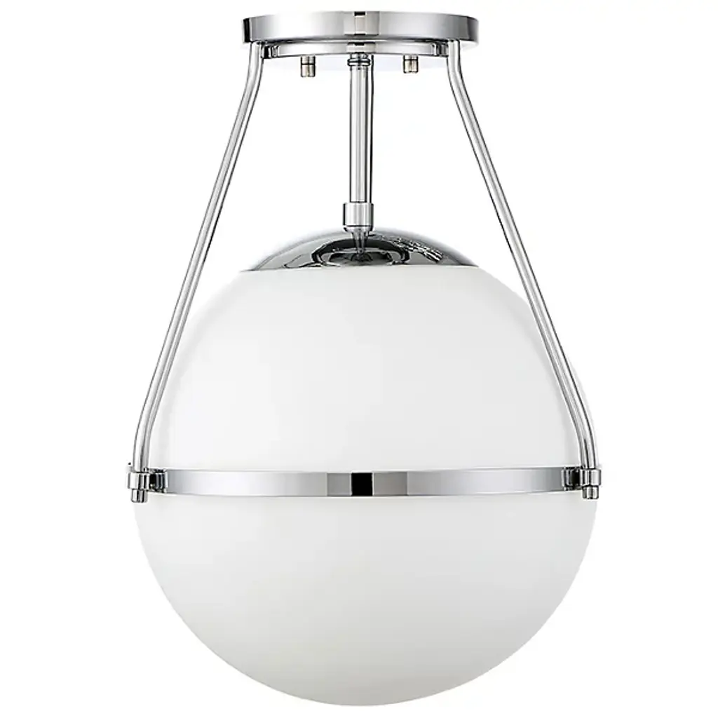Glowing reviews for form and function. The Kerry Semi-Flushmount by Alder & Ore has a retro vibe yet looks current. Its White Opal glass globe shade evokes mid-century modern designs and offers comfortable diffused illumination. With mounting hardware plus decorative banding and rods done in a stylish metal finish, this transitional ceiling fixture creates a cohesive décor look as it lights up a space.