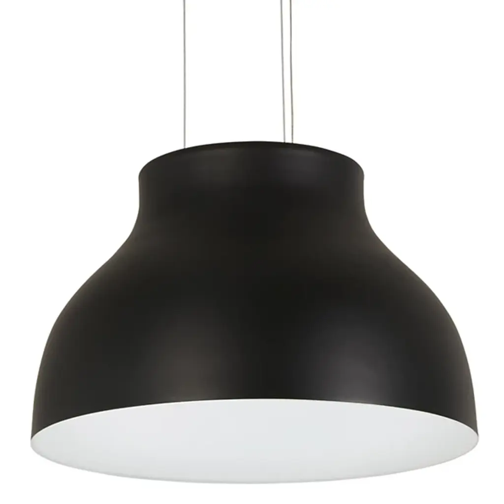Chic ceiling fixture utilizing integrated LED technology. Mixing form and function, the Kettle Up LED Pendant by George Kovacs offers practical lighting that complements transitional or contemporary themed interiors. Its inverted pot-like dome shaped shade is made from metal and is supported by slim suspension wires and a round ceiling canopy. When lit, this fixture delivers energy-efficient down lighting to bring a boost of brightness and grace to your kitchen or dining area.
