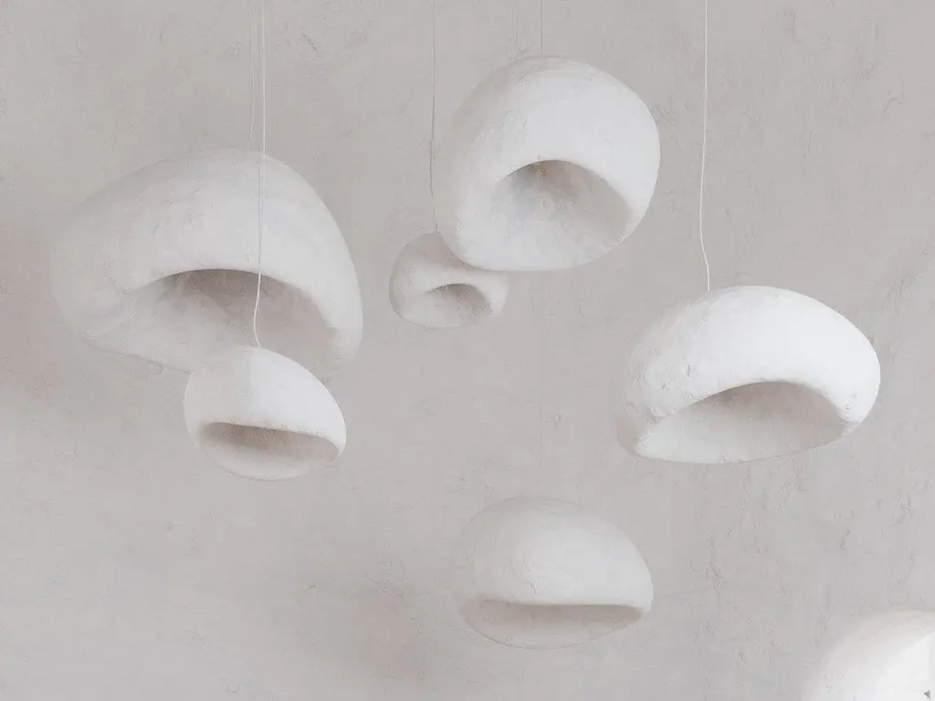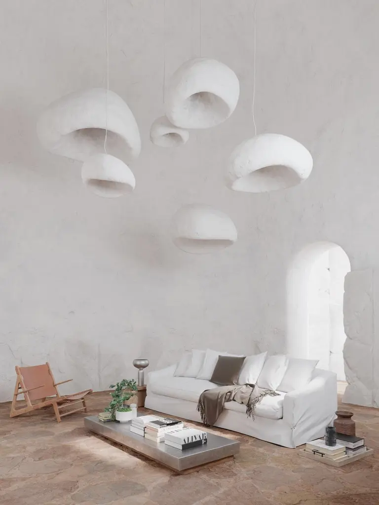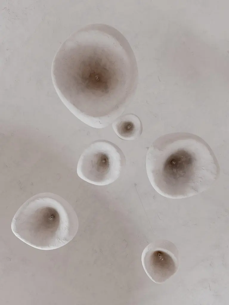 Khmara pendant lamp 72 by MakhnoDimensions: W 119.5 x D 110 x H 72 cmMaterials: Polystyrene foam, plasterKhmara is currently available in plaster, copper, metal and ceramic, and can be implemented in up to 7 different sizes, as well as be customized by individual order.All our lamps can be wired according to each country. If sold to the USA it will be wired for the USA for instance.KHMARA lamp is a spherical cloud created to light up the interiors with tenderness. It never rains. It smells like cotton candy and tastes like a summer morning. KHMARA transforms every ceiling into the sky and fills it with a tender presence.Khmara lamps were exhibited at iSaloni Euroluce 2019 at the Makhno designer booth. They were also in the trend zone of Maison & Objet 2018. Now Khmara is a constant resident of Mettlesome Design Gallery in Paris.Makhno Studio is a workshop of modern Ukrainian design and architecture. We work in Ukrainian contemporary style. According to international experts, this style will change the Scandinavian on the world design stage.Since 2003, we have been creating projects intertwining Ukrainian traditions, world trends and the Japanese philosophy of wabi-sabi, the forces of nature, human talent and architectural mind. We have completed over 600 projects in 21 countries and are ready to create something significant for you.The main task of our specialists — architects, designers, ceramists — is to create comfort that will become near and dear.