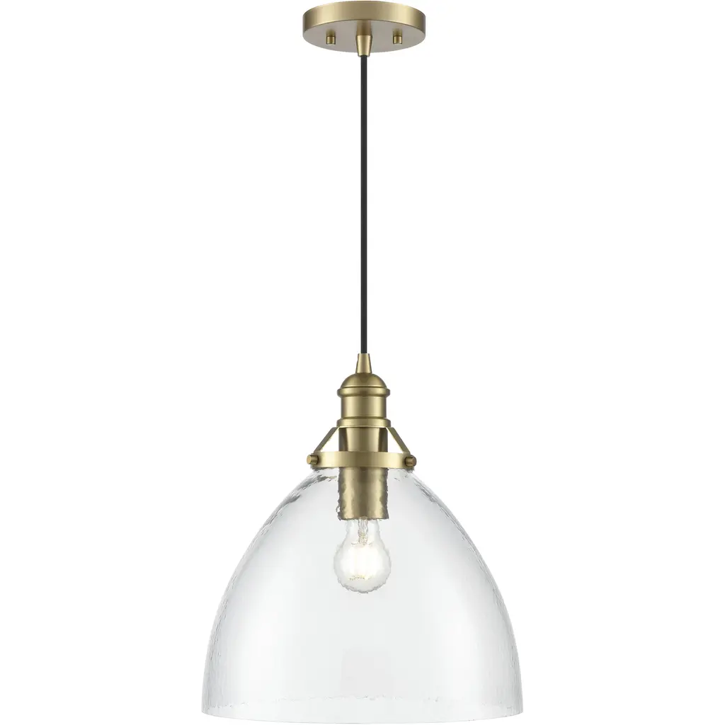 The Khrisa Family of pendant lighting combines modern styling with distinctive shades to create a lighting masterpiece perfect for the kitchen, dining area, or entryway. The stylized 1-light fixtures, finished in brushed nickel, polished nickel, vintage brass, or matte black, feature post-industrial styled hardware, creating a contemporary profile. The gorgeous, hammered glass shades are available in either a drum or bell-shaped silhouette and create a unique dappled lighting effect.