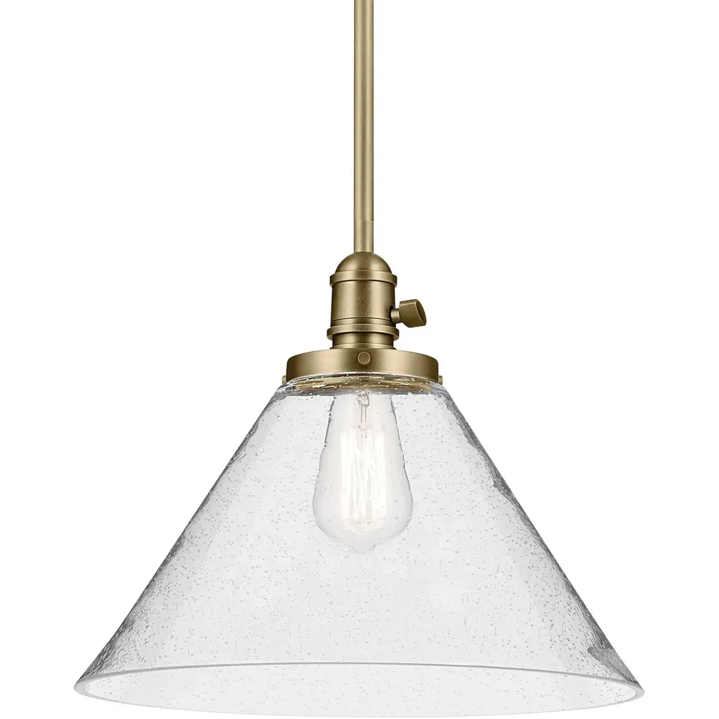 Offering convenience and ease in coordinating with other lighting options, the Avery 1 light pendant is truly as versatile as it is beautiful. Avery creates a classic yet dramatic statement to any space while it complements a variety of decor, including industrial aesthetics. Its shade adds to its charm by providing a beautiful, ambient lighting to the entire room and is easy to remove for convenience and ease of cleaning and replacement. A stem with a functional on/off switch on its socket completes the look.Features:Dimensions:Electrical Specifications: