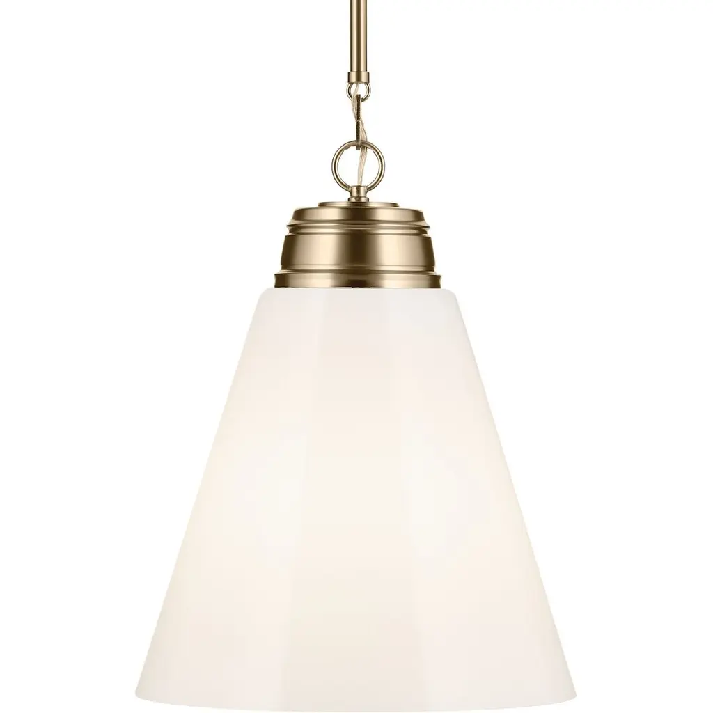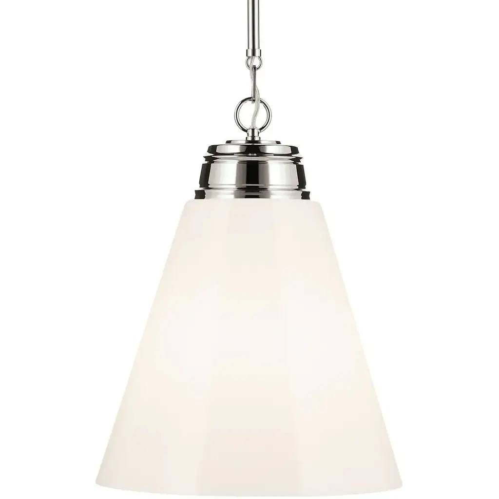 As versatile as it is luxurious, this 1-light large pendant is a true statement piece. Its decorative chain comes preassembled with three stems connected by links, giving it a unique detail while allowing you to easily adjust its height. Its glossy white opal glass shade allows for ample illumination in a variety of environments, most notably, updated traditional. Chain hung and sloped ceiling compatible.Features:Dimensions:Electrical Specifications: