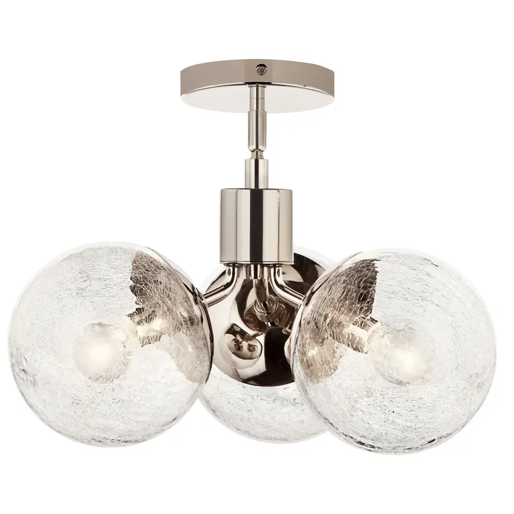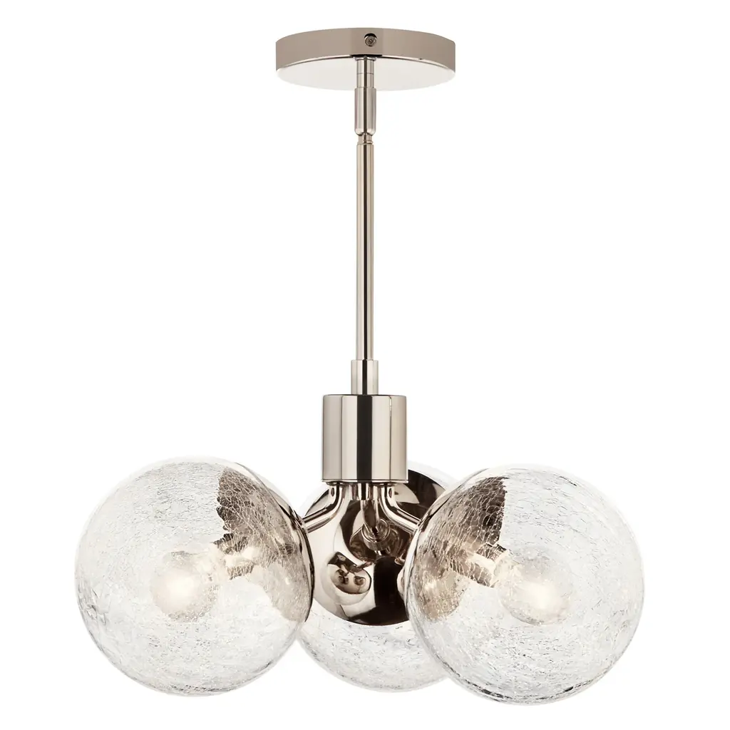 Inspired by frozen grapes, the Silvarious convertible pendant will capture the hearts of family and friends. Gathered at the center, its arms branch out with sparkling globes at the end, for a simple, yet playful design. Its crackled glass provides unique light play. Install as a semi flush mount or pendant. As a semi-flush, the glass will deliver a beautiful light effect on the ceiling and walls.Features:Dimensions:Electrical Specifications: