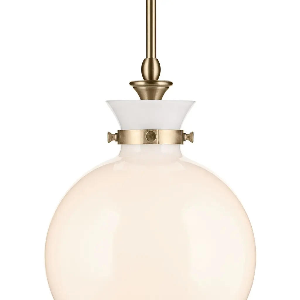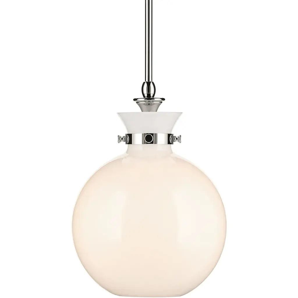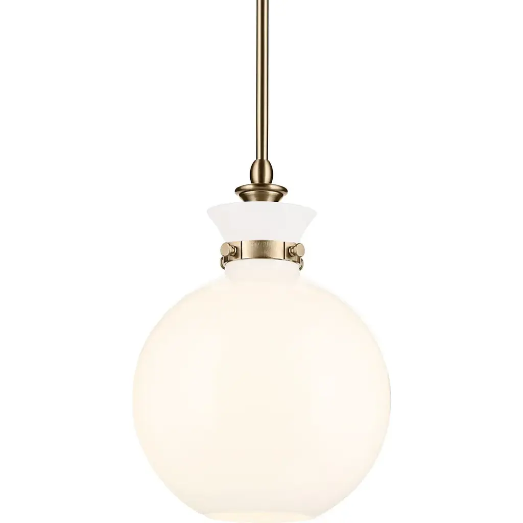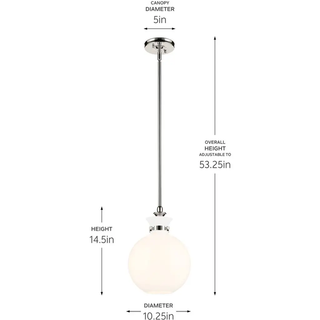 The Laria 1-light pendant is equally gorgeous and versatile. Inspired by Korean sachet bags, its classic globe shape nods to the traditional while the subtle detail on the fittings refreshes and enhances its look. This is craftsmanship at its best. The canopy features a soft, subtle curvature for added detail. The glass gives it a milky white silhouette for a truly refined look.Features:Dimensions:Electrical Specifications: