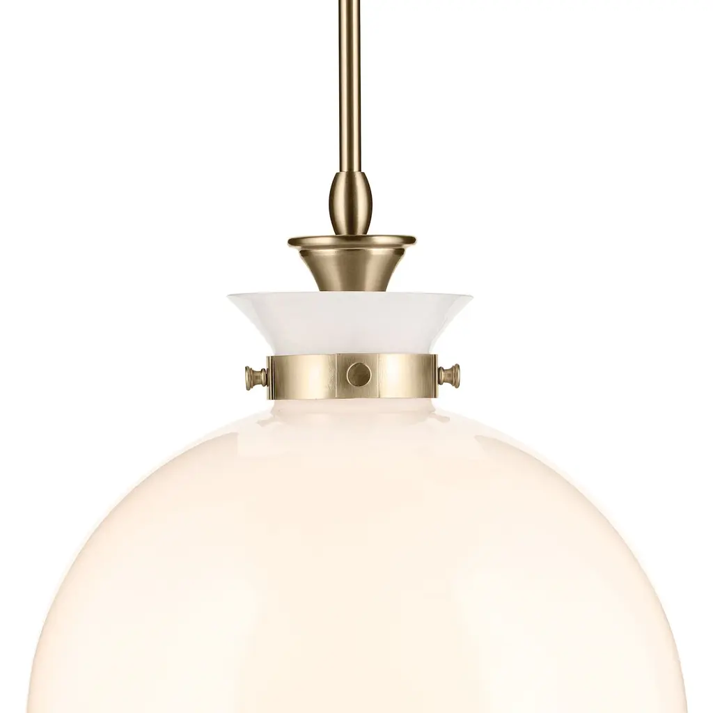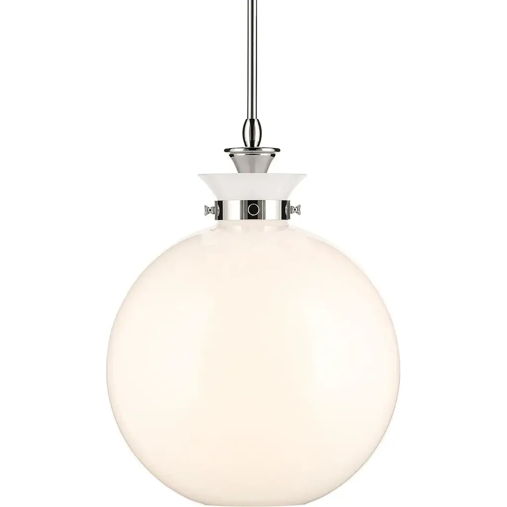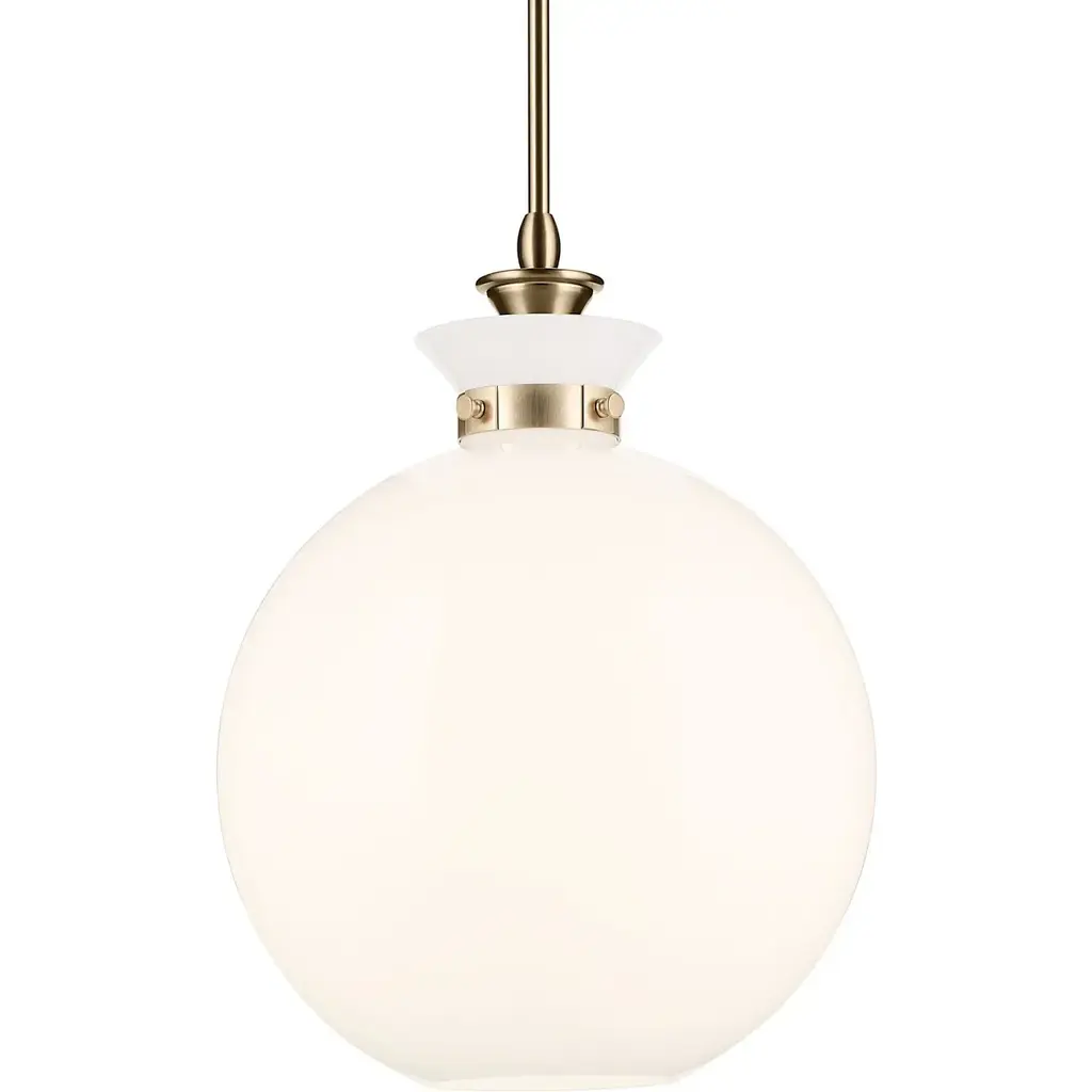 The Laria 1-light pendant is equally gorgeous and versatile. Inspired by Korean sachet bags, its classic globe shape nods to the traditional while the subtle detail on the fittings refreshes and enhances its look. This is craftsmanship at its best. The canopy features a soft, subtle curvature for added detail. The glass gives it a milky white silhouette for a truly refined look.Features:Dimensions:Electrical Specifications: