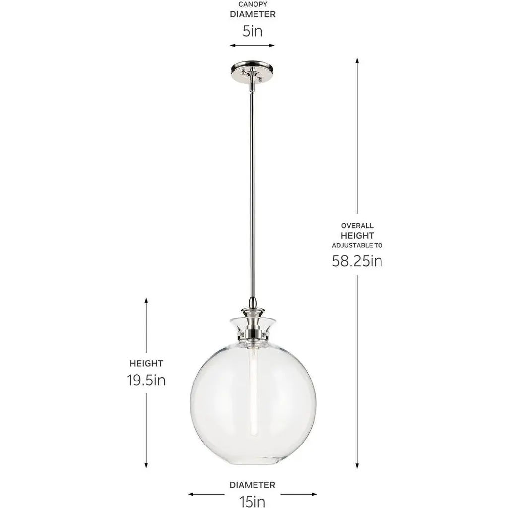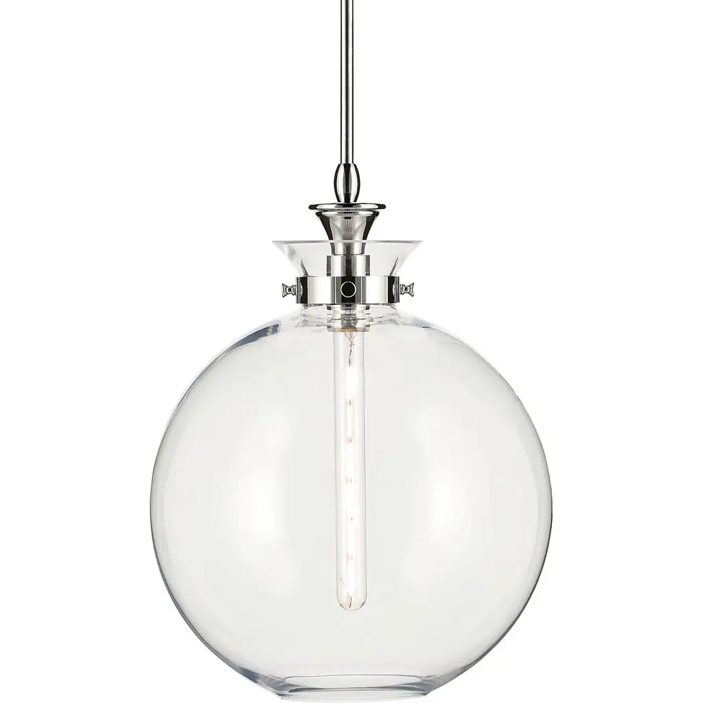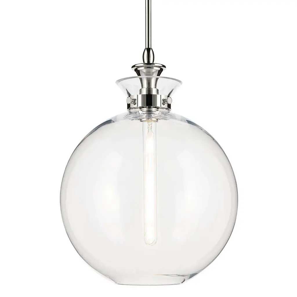 The Laria 1-light pendant is equally gorgeous and versatile. Inspired by Korean sachet bags, its classic globe shape nods to the traditional while the subtle detail on the fittings refreshes and enhances its look. This is craftsmanship at its best. The canopy features a soft, subtle curvature for added detail. The glass allows the bulb to show through for a truly refined look.Features:Dimensions:Electrical Specifications: