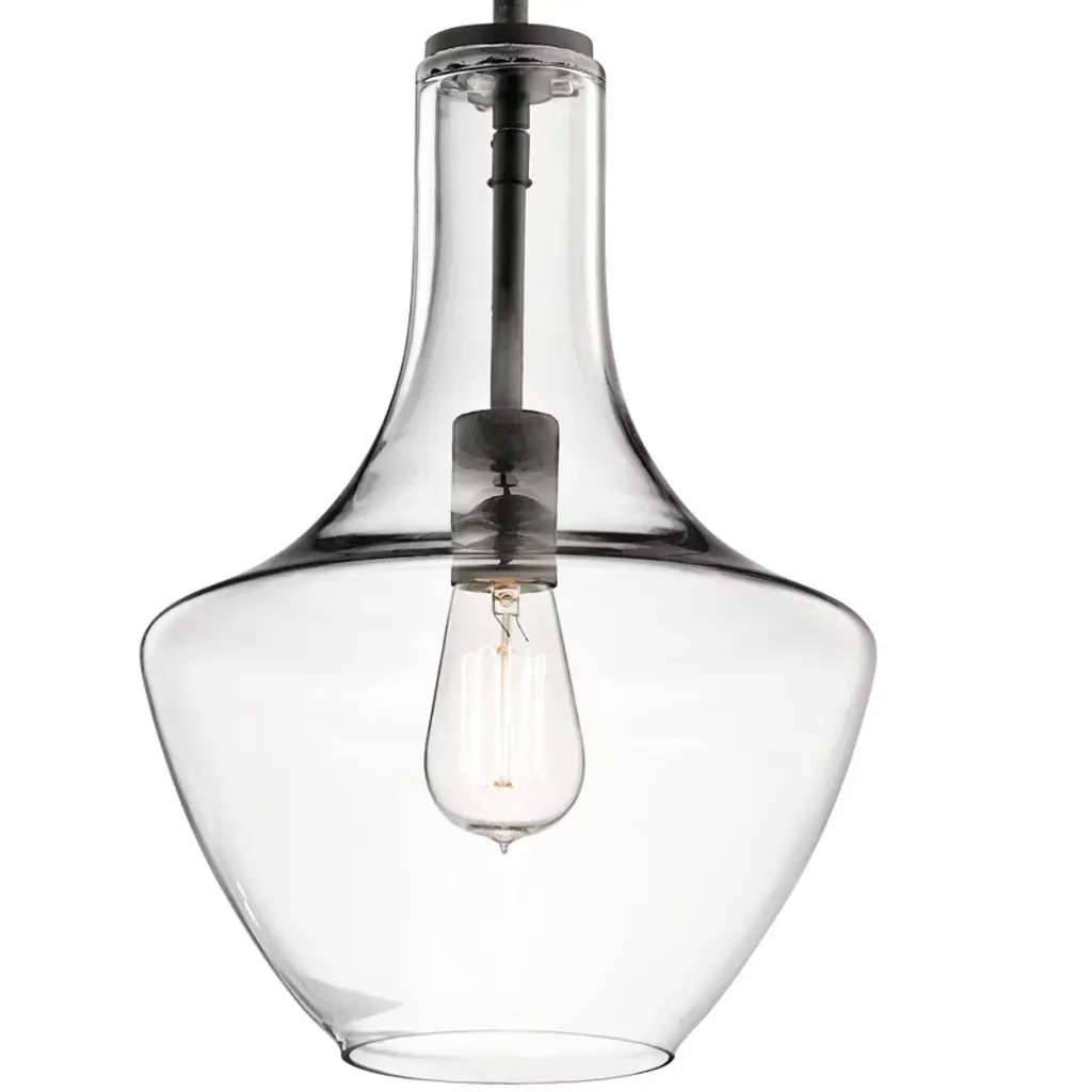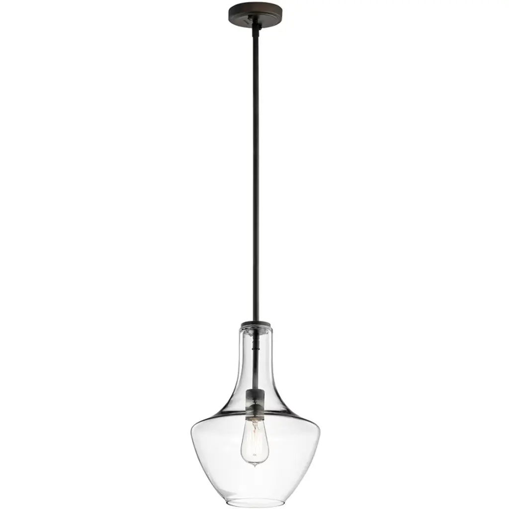 Encased in clear blown glass, this Everly mini pendant light by Kichler is crafted for refined elegance. The olde bronze finish complements the personality of this pendant with traditional character. For convenience, this pendant light is sloped ceiling adaptable, allowing it to accommodate a variety of areas.
