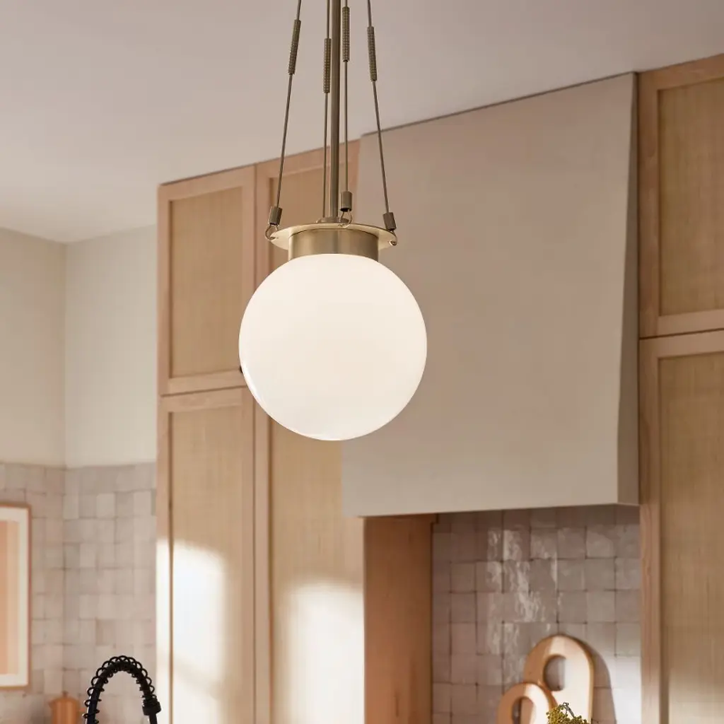 The Albers 1 light pendant's unique look easily adds interest to your space. Its refined black finish complements many design styles, and its knurled detail on the uprights make it truly unique. It comes with a globe-shaped opal glass shade. Material: Steel, Finish Color: Champagne Bronze, Width: 10.5", Height: 33.25", Length: 10.5", Lamping Type: Incandescent, Number Of Bulbs: 1, Wattage: 100 Watts, Dimmable: Yes,