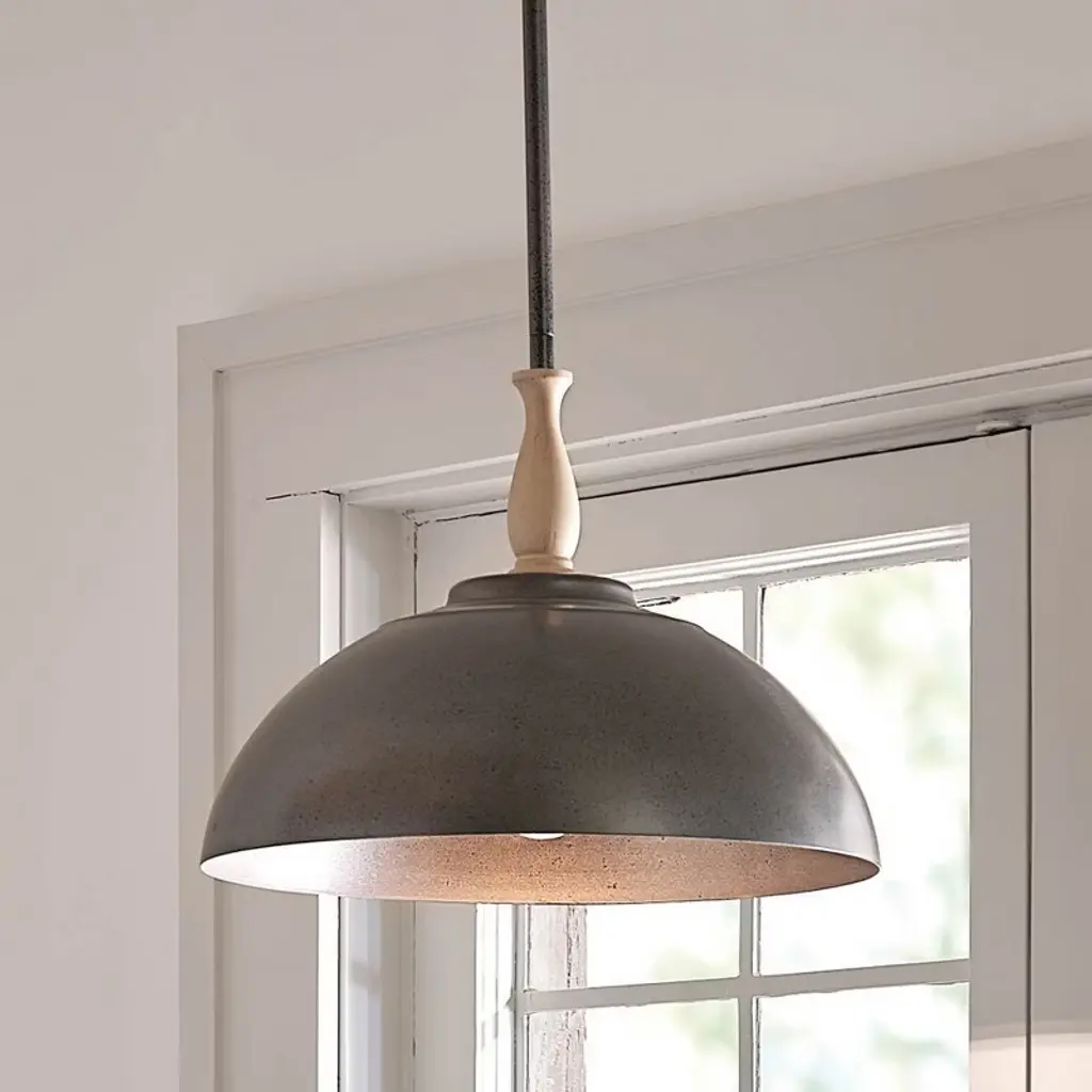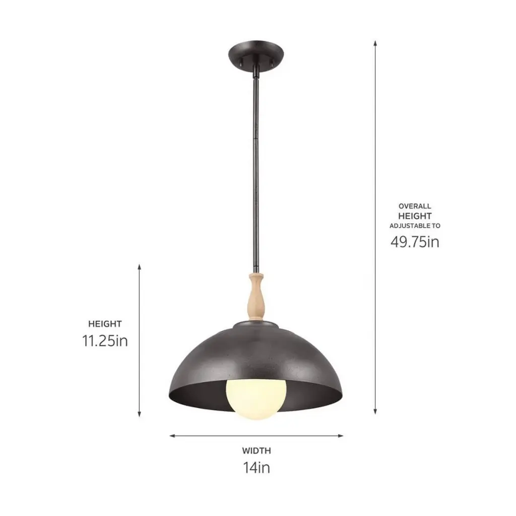 Collection: Fira, Material: Steel, Finish Color: Anvil Iron, Width: 14", Height: 11.25", Length: 14", Lamping Type: Incandescent, Number Of Bulbs: 1, Wattage: 75 Watts, Moisture Rating: Dry Rated, Desc: Celebrate traditional artistry with the Fira 14 inch 1 light pendant. The decorative spindle in Beech resembles the spindle of antique furniture, and its Anvil Iron shade gives it an elegant, vintage look. Adjust its height to your space. Refreshingly simple and comfortably warm, Fira illuminates your vintage design style A layered, aged iron-like finish, Anvil Iron�s silver base and subtle darker gray detail perfectly complements its Beech spindle Because the bulb is visible, you're free to customize the style of your Fira by using differently shaped bulbs Fixture measures 14.0-in diameter x 11.2-in height and includes multiple stems to adjust its height up to 50-in An ideal accent throughout your home or use in pairs and multiples over dining areas Takes one medium white G40 u