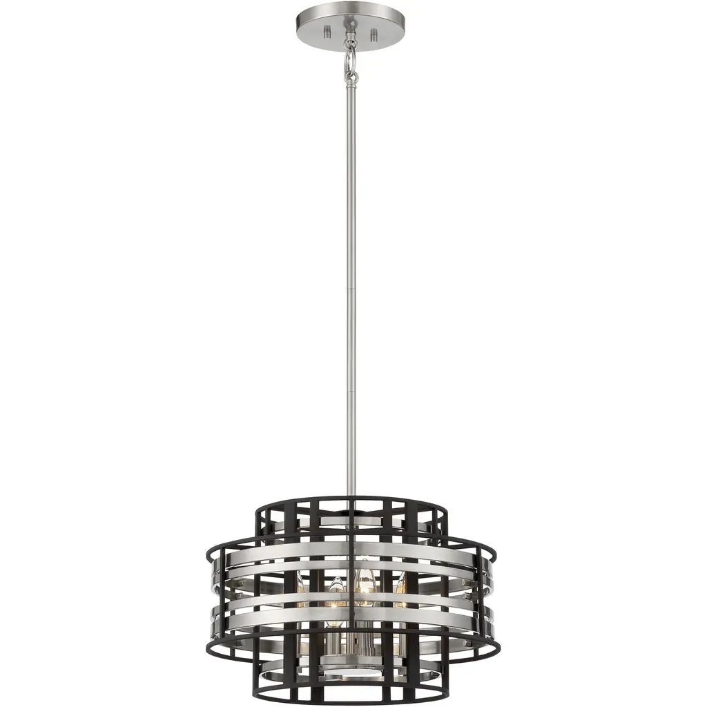 Roswell 7.25" 3 Light Pendant with Satin Etched Diffuser and Off White Linen Shade in Brushed Nickel