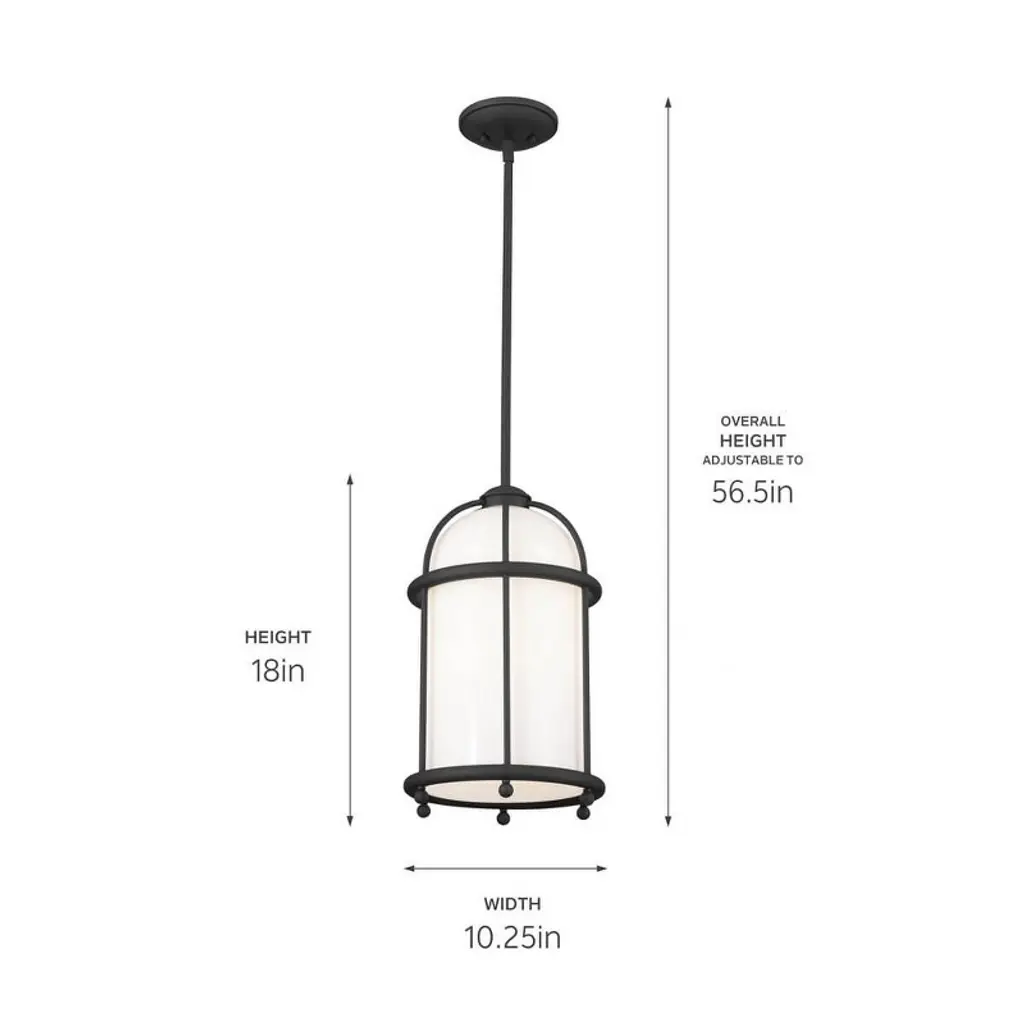 Collection: Topiary, Material: Steel, Finish Color: Textured Black, Width: 10.25", Height: 18", Length: 10.25", Hanging Method: Stem, Lamping Type: Incandescent, Number Of Bulbs: 1, Wattage: 100 Watts, Moisture Rating: Dry Rated, Desc: With its refined, antique-like decorative cage, the Topiary 1 light pendant easily grabs attention. Its versatile Textured Black finish complements its stunning Opal Glass. Enjoy lovely ambient lighting when lit and a luminous finish when not. Influenced by nature, elegant by design, Topiary's heirloom feel vibes with your vintage lifestyle A rich Black finish with a subtle surface texture that creates dimension as it effortlessly complements various design styles Opal Glass shade is reminiscent of Depression-era milk glass to illuminate in nostalgic beauty Fixture measures 10.0-in diameter x 17.8-in height and includes multiple stems to adjust its height up to 56.5-in Install Topiary pendants over your kitchen island, in a nook, or on either sid