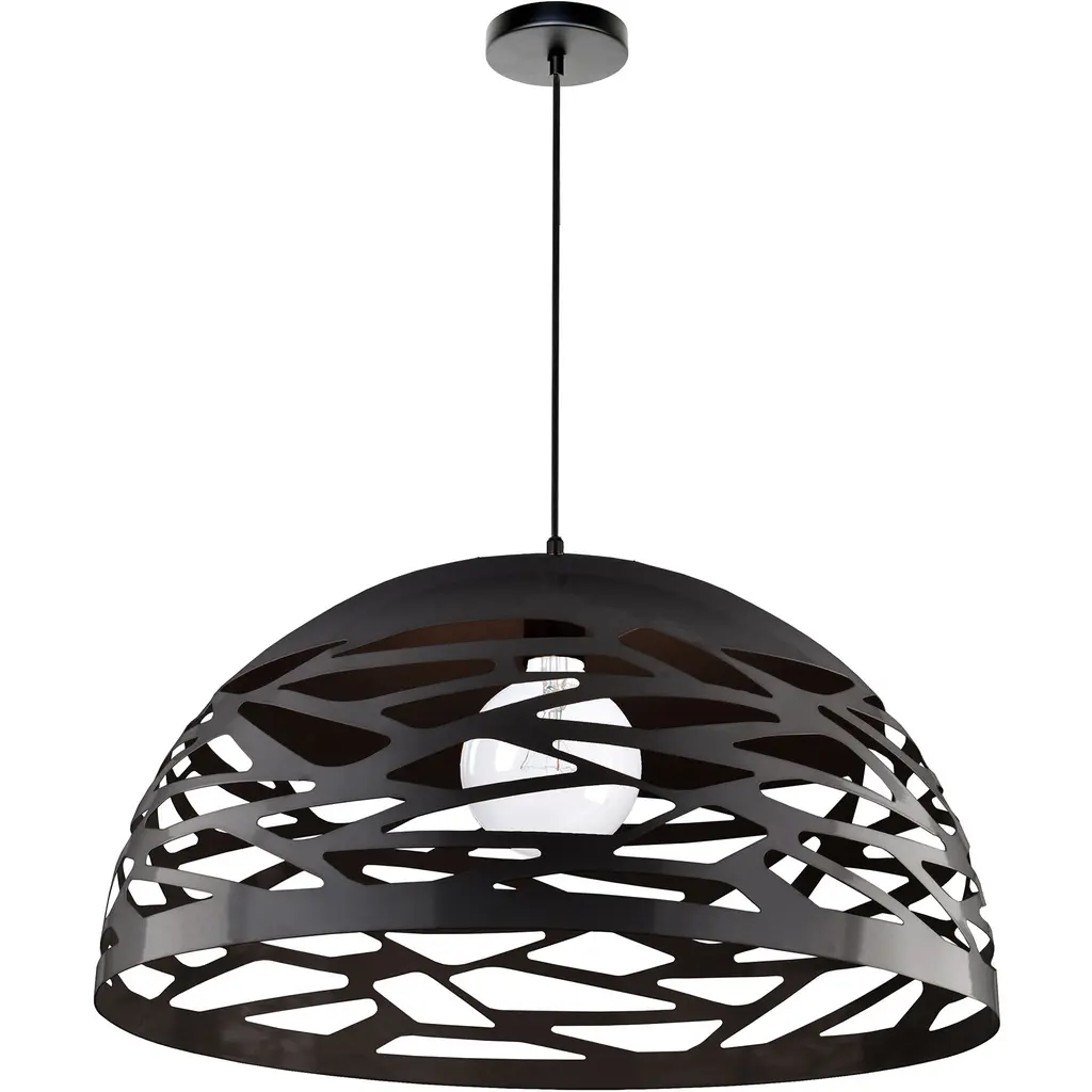 The Kiev Black Pendant features a unique shade that melds the beauty of shimmering glass with the visual advantages of cut metal, which results in a compelling optical display in a smartly modern design. With random stenciled openings placed throughout the bottom portion of this pendant, the concealed light source focuses the eye through the multi-dimensional sightlines while allowing for a eye-catching sparkle from the exposed clear glass and dramatic play of light through the accents and onto adjacent surfaces. The stem pendant fixture is equipped with an adjustable telescoping section, 4 connectable stem sections (3", 6", 12", and 18") and low Profile flat monopoint canopy. These stylish and functional luminaries are offered in a beautiful Black finish.
