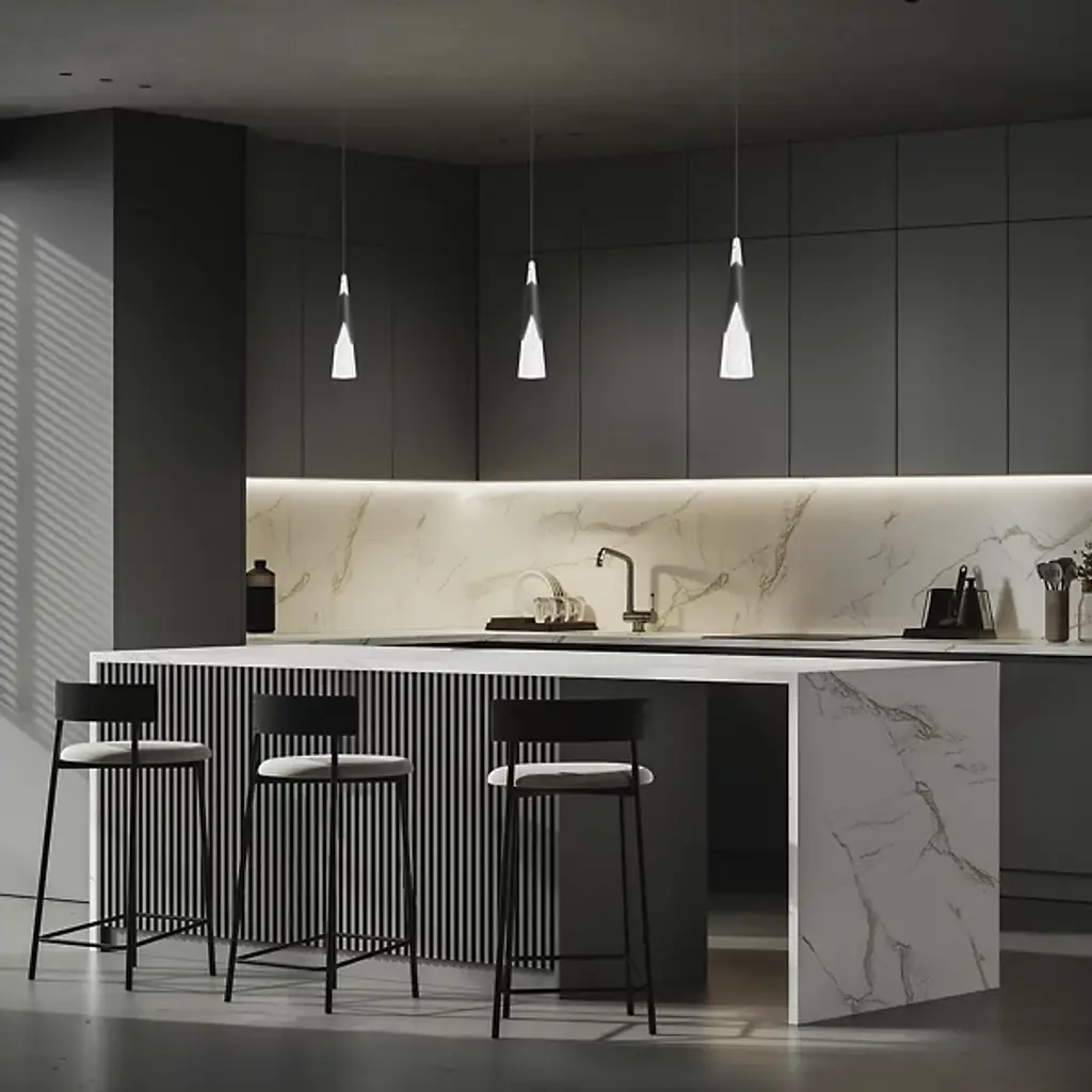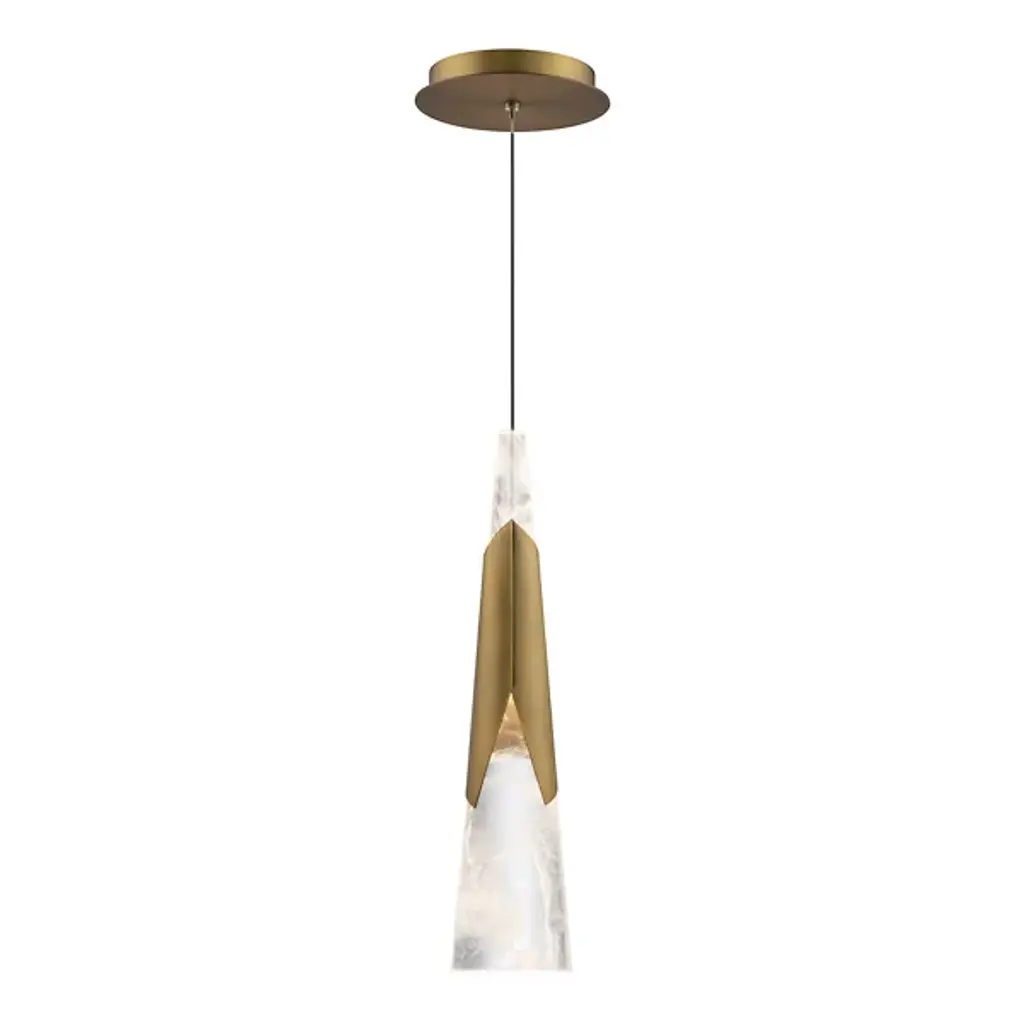 The Kilt LED Mini Pendant from Modern Forms features hazy acrylic cones paired with crisp metal skirts, creating a striking visual statement elegantly installed on a single canopy. Designed to deliver ample lighting, it enhances spaces throughout a home or business with its innovative bent metal frame and decorative acrylic shade, offering dynamic and stylish illumination. Ultra-sleek electrified cables eliminate the need for bulky power wires, and the height is easily adjustable through push-pin connectors on the canopy.
