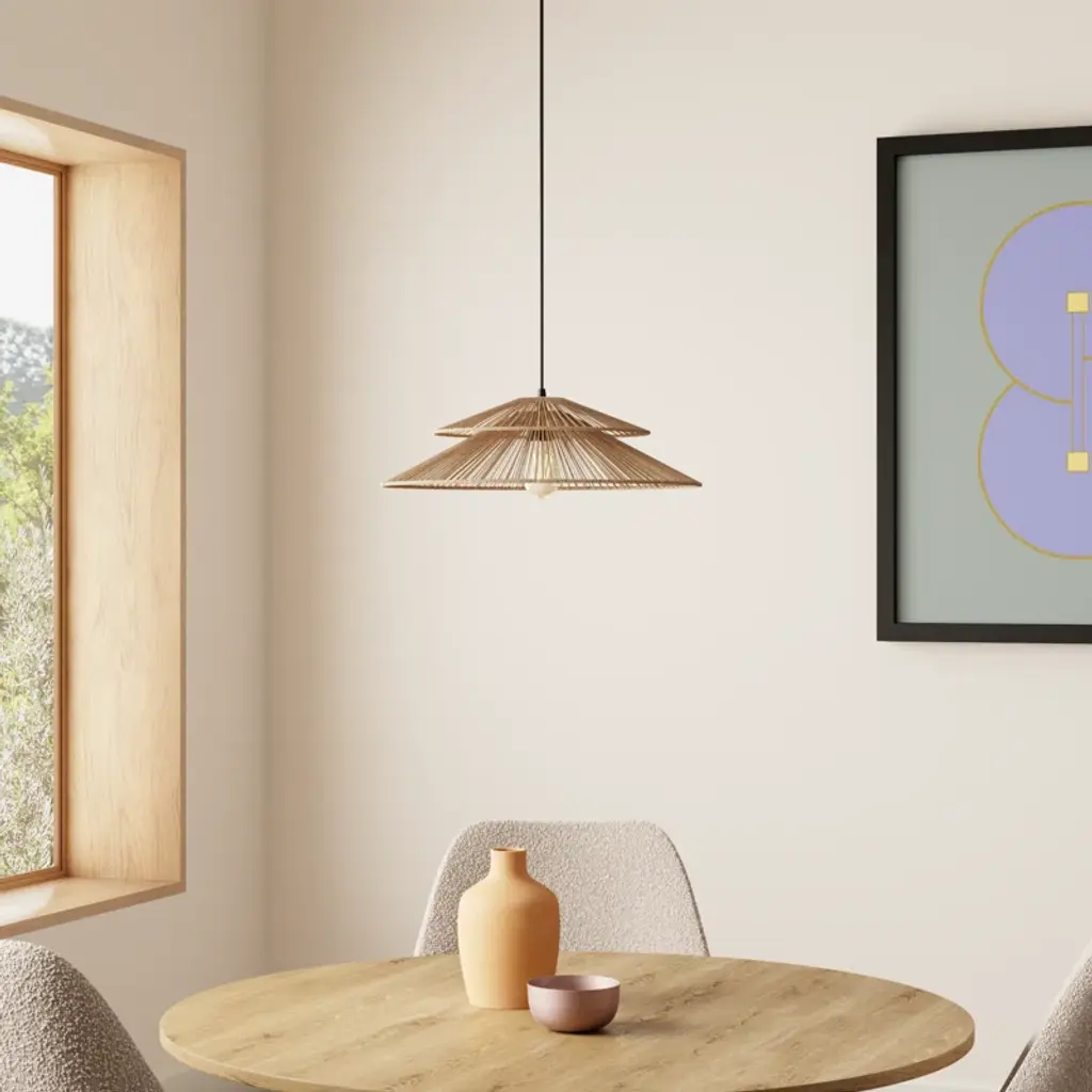 Add a graceful and charming focal point to any room with our Kimi pendant light. Crinkled paper is skillfully wrapped around our modern and streamlined pendant. Creating a soft, layered texture, our pendant lends a breezy and charming appeal to any corner. Its black metallic hardware creates a striking contrast with the airy and ethereal look of the pendant. Statement-making and generous in size, the pendant can provide a large canopy of light over a dining table, bed, or sitting area.