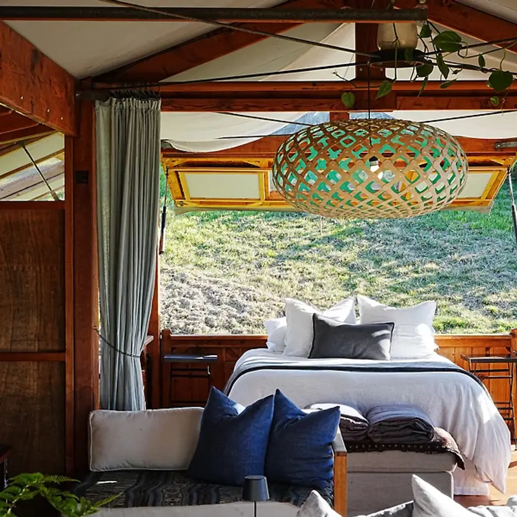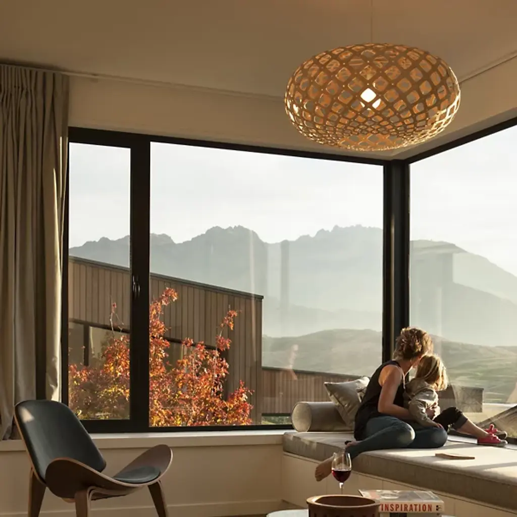 The David Trubridge Design Kina Pendant is an enormous lighting fixture inspired by a diminutive sea creature. At more than five feet around, the Kina yet retains the shape and pattern evocative of a sea urchin's shell. It is made out of durable, warm bamboo components, pre-assembled with plastic clips.