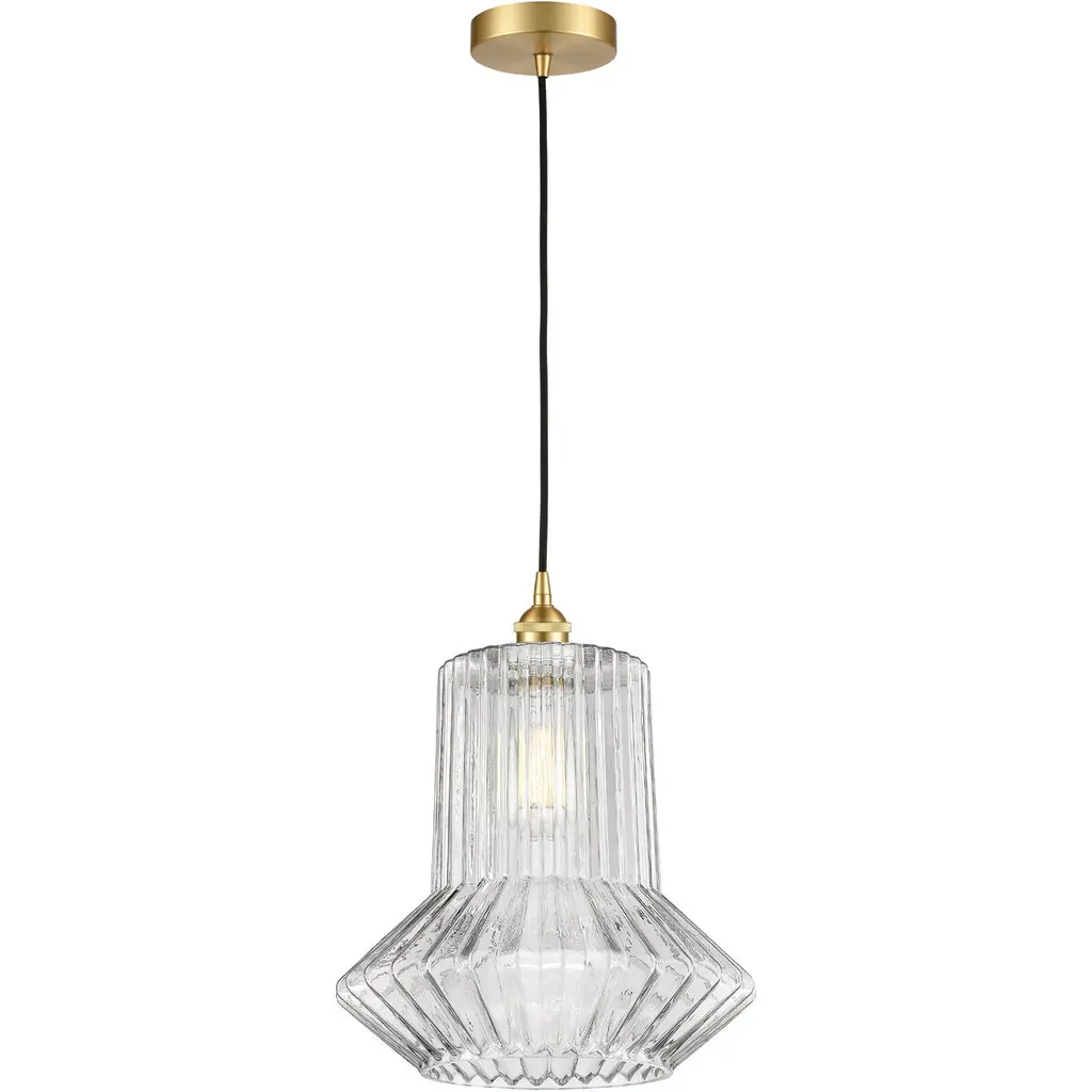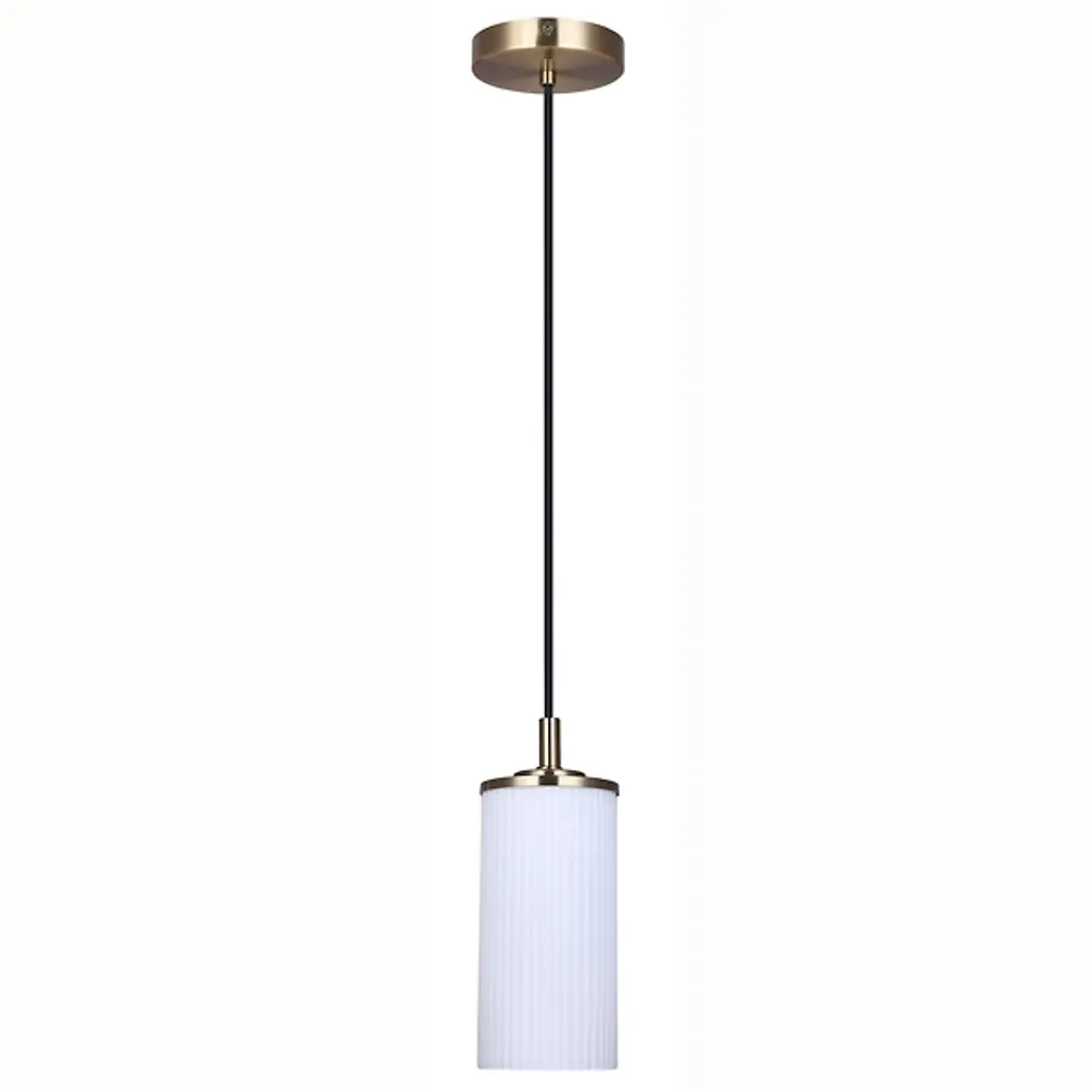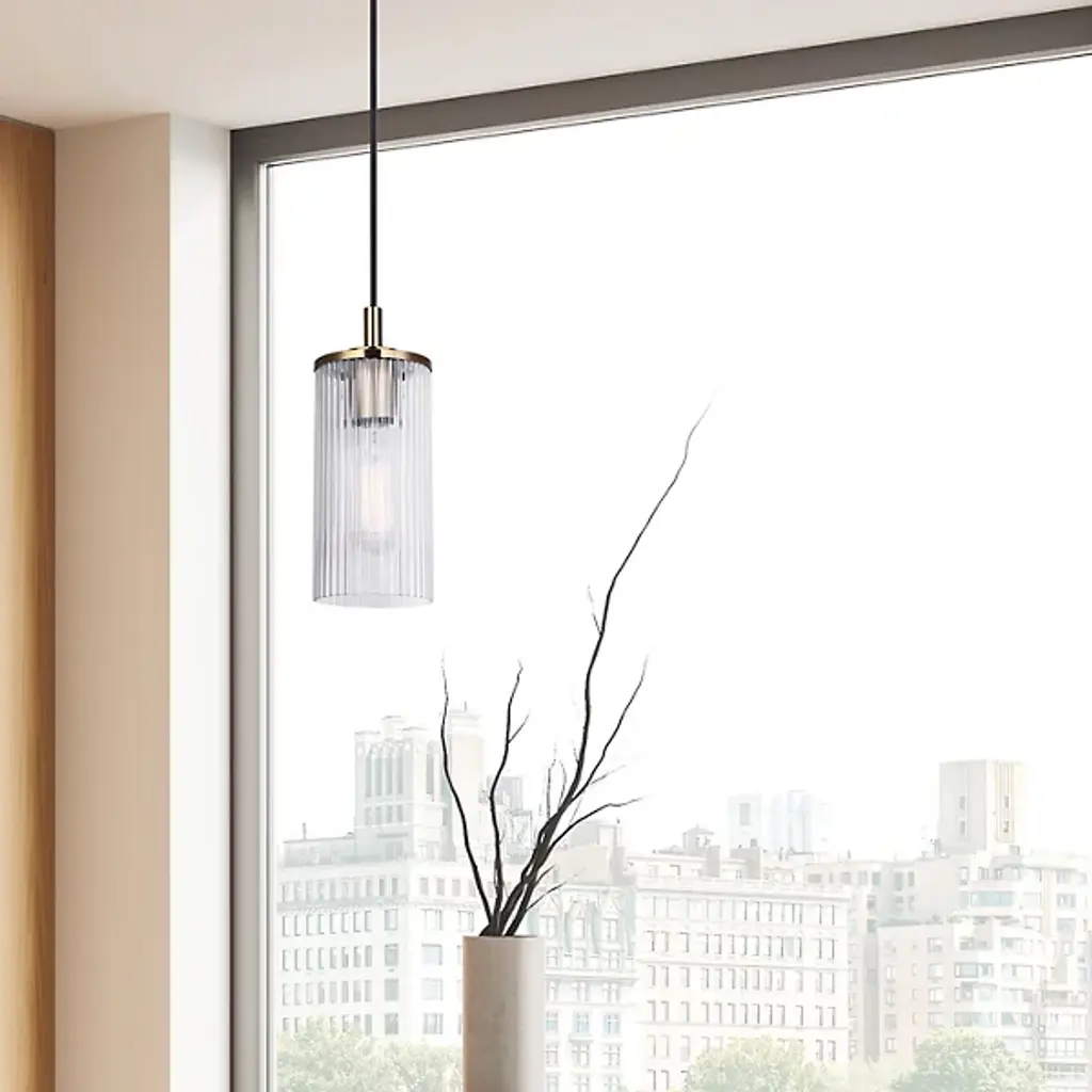 The Kinslea Mini Pendant from Canarm showcases a ribbed glass cylinder that turns light into a textural experience rather than merely illuminating a space. Vertical ridges in the glass create subtle light variations and shadow play that change as viewers move around the fixture. The transparent housing reveals the light source within, celebrating the essential elements of lighting design rather than concealing them. This pendant’s adjustable hanging height allows for customized positioning that can highlight dining surfaces or create intimate spaces within larger rooms.