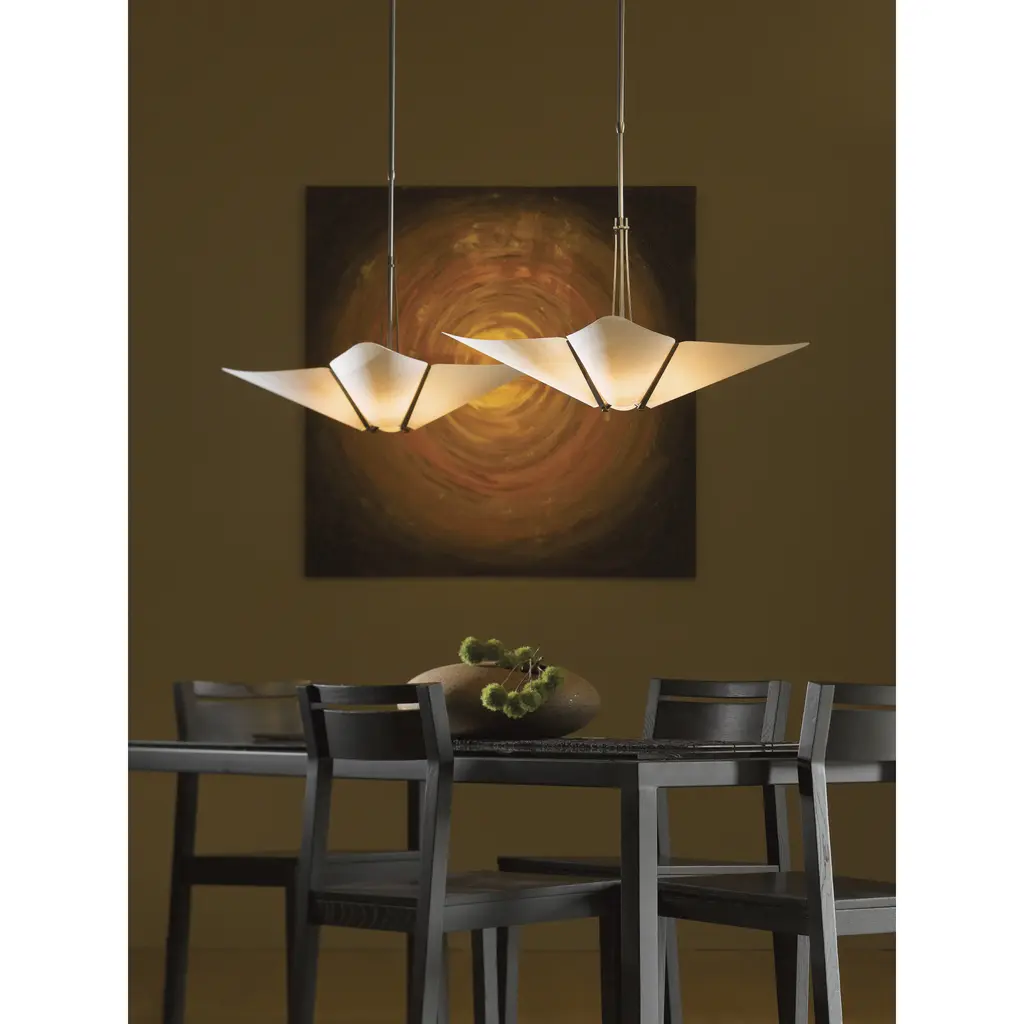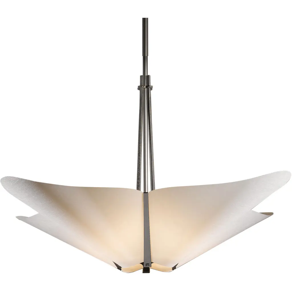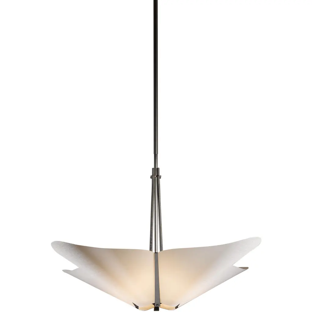Kirigami is the Japanese art of folding and cutting paper. The shape of this pendant's shade and the way the hand-forged steel supports the shade, deliver a modern look that borrows inspiration from an ancient art form. Handcrafted by Vermont artisans.