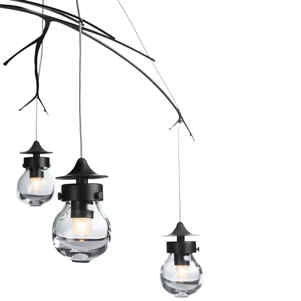 The Kiwi Pendant by Hubbardton Forge uses the weight of heavy hand-blown glass to balance six mini pendants over a set of steel branches, melding symmetry and nature as they were meant to be. Unique socket details ensure evocation of intrigue and awe. Thick glass distributes ambient light to the room while creating beautiful refractions and light play.