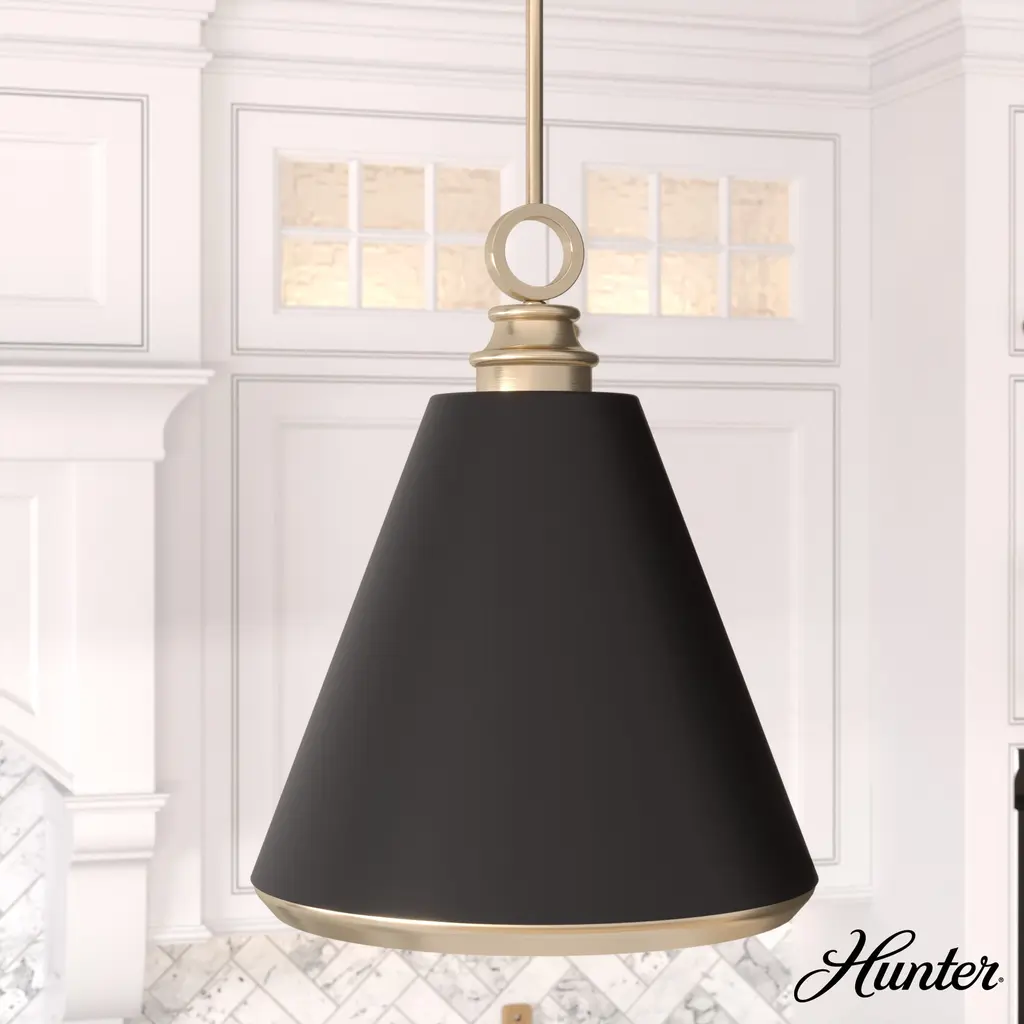 Suitable in any place where you entertain. The Klein 16 inch pendant makes a statement. The ring above the metal shade is the crowning piece of this sleek design. Make a modern statement with the Klein pendant light.