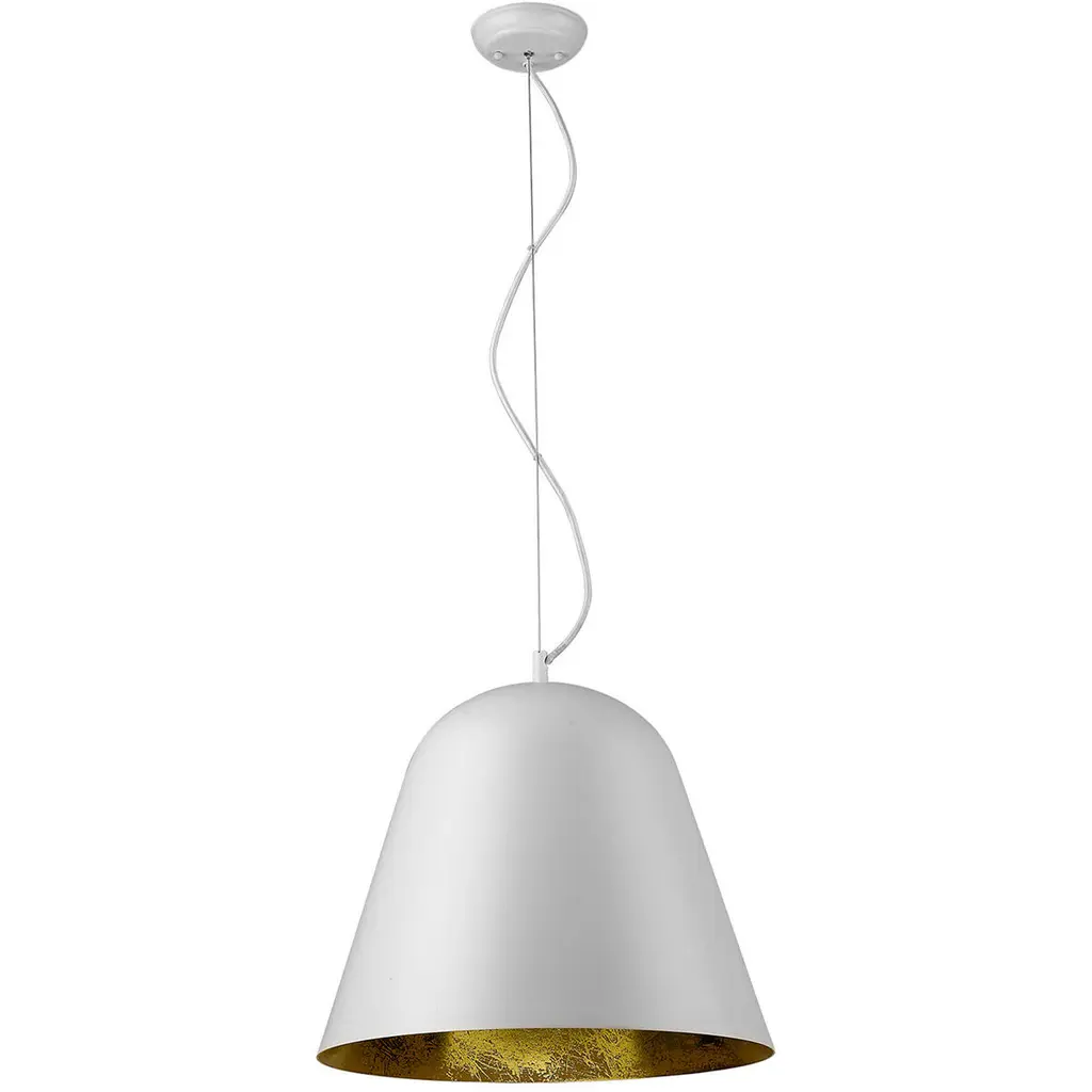 Bigger doesn't always mean better, but when it comes to statement-making lighting, Knell is the best. Featuring a large, bell-shaped shade of metal and wire/cord suspension, Knell craves a large kitchen island overhead to call home. Available in a black with copper interior or a white with gold leaf interior finish.