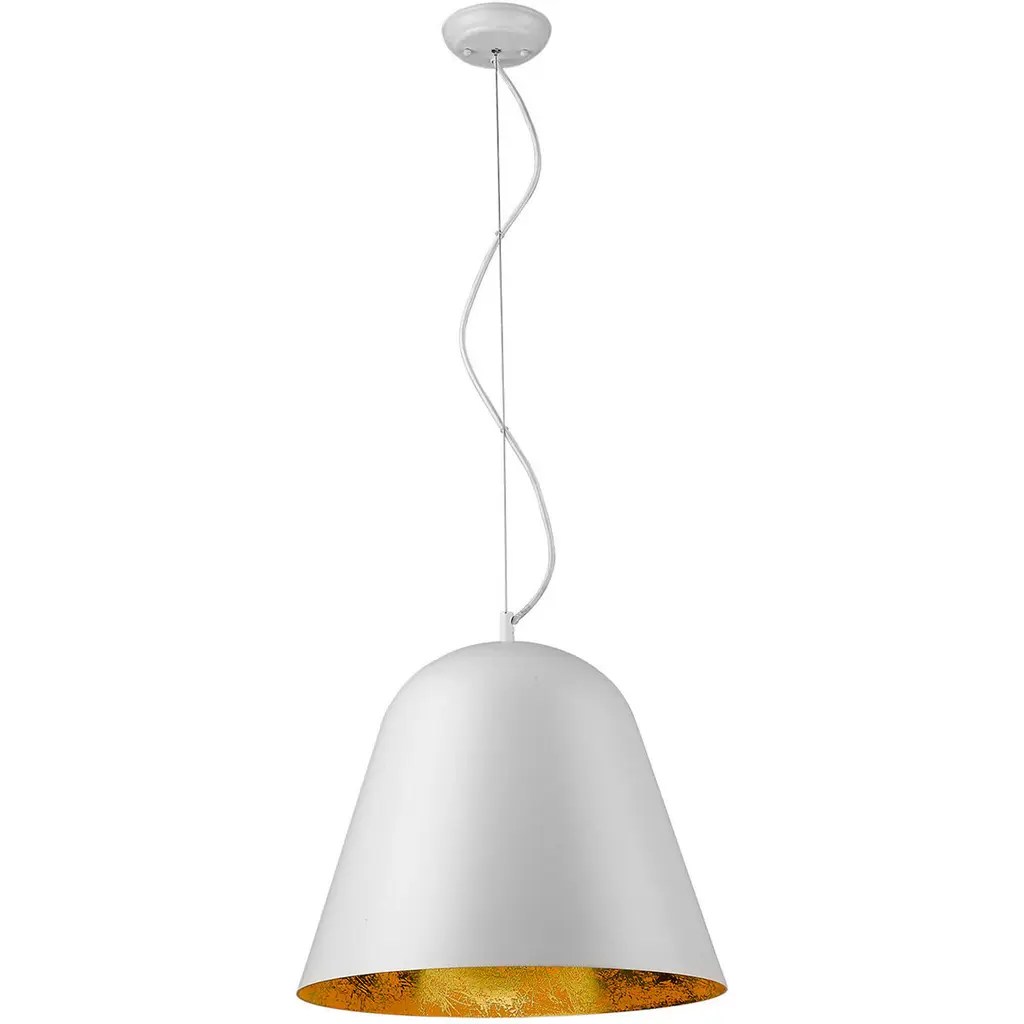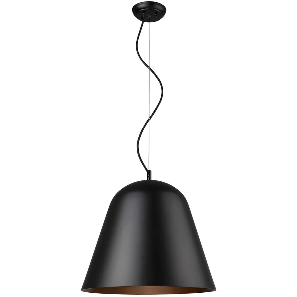 Bigger doesn't always mean better, but when it comes to statement-making lighting, Knell is the best. Featuring a large, bell-shaped shade of metal and wire/cord suspension, Knell craves a large kitchen island overhead to call home. Available in a black with copper interior or a white with gold leaf interior finish.