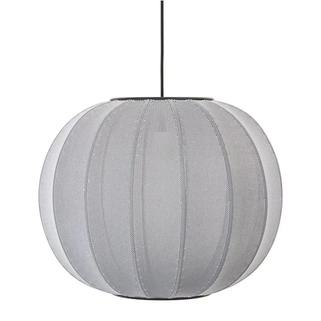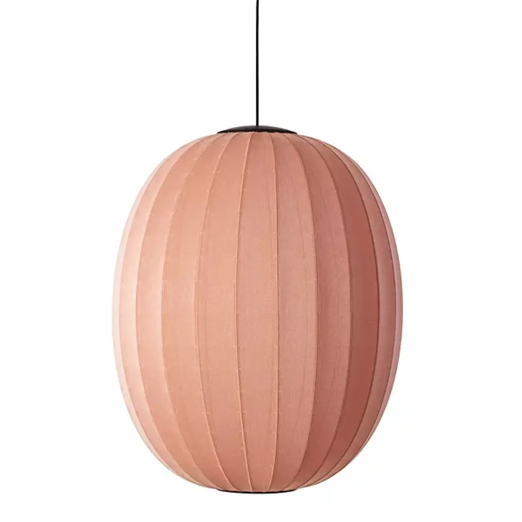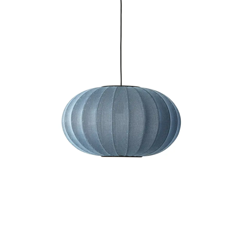 Bring a soft, atmospheric light into your home with the Made by Hand Knit-Wit Oval Pendant Lamp 57. Design studio Iskos Berlin took inspiration from knitting and simple geometric forms to create the Knit-Wit collection. A fusion of tradition and modern technology, this pendant light features a CNC 3D knitted mesh fabric. The textile both conceals and reveals the light source, allowing users to change the look of the pendant lamp subtly by simply changing the glass from clear to frosted. This version of the Knit-Wit pendants boasts an oval shape and a medium size. The fabric comes in an array of hues, offering a convenient solution to add a pop of color to a space or to match a neutral palette. Thanks to its large variety in size and color, the collection allows the installation of the Made by Hand Knit-Wit Oval Pendant Lamp 57 on its own or in a cluster alongside other pendant lights from the series.