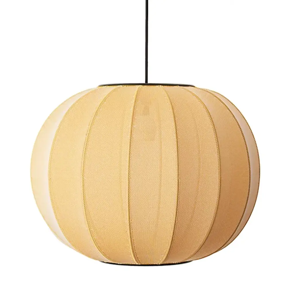 Celebrating the craft of knitting, the Knit-Wit Round Pendant from Made by Hand creates a rousing atmosphere in a nod to the traditional Chinese rice lamp. Studio Iskos-Berlin focuses on the transformation of objects with a focus on technology. Here, the studio focuses on the sustainable and flexible properties of yarn. Yarn is intricately fashioned into a radiating pattern that’s generous in texture. This yarn is engineered with transparency to help diffuse the light. Fine, flexible rods expand this yarn into a globe shade, creating curvy contours evocative of a Chinese lantern’s bamboo framework. Once on, a single lamp mellows its cozy light through, leaving behind a memorable silhouette.
