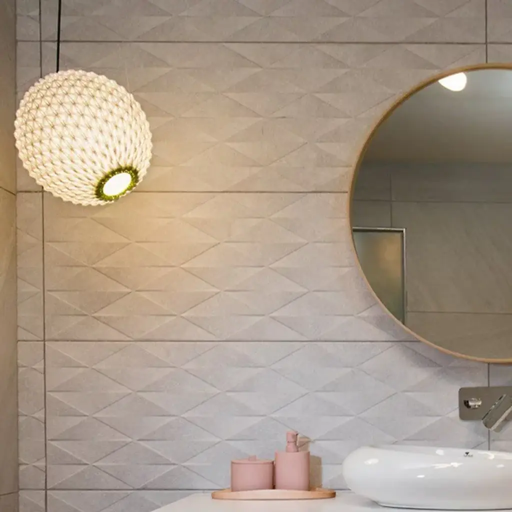 The Knitted Tilt Pendant from Ariel Zuckerman features acrylic threads knitted in fixed patterns and wool crochet to form a striking three-dimensional fabric that serves as a lighting fixture. The fusion of industrial knitted fabric with handmade crochet details creates an organic texture with vibrant color. This knitted pendant lampshade adds a splash of color and texture to your home décor, hanging gracefully to illuminate any space with warmth and artistic flair.