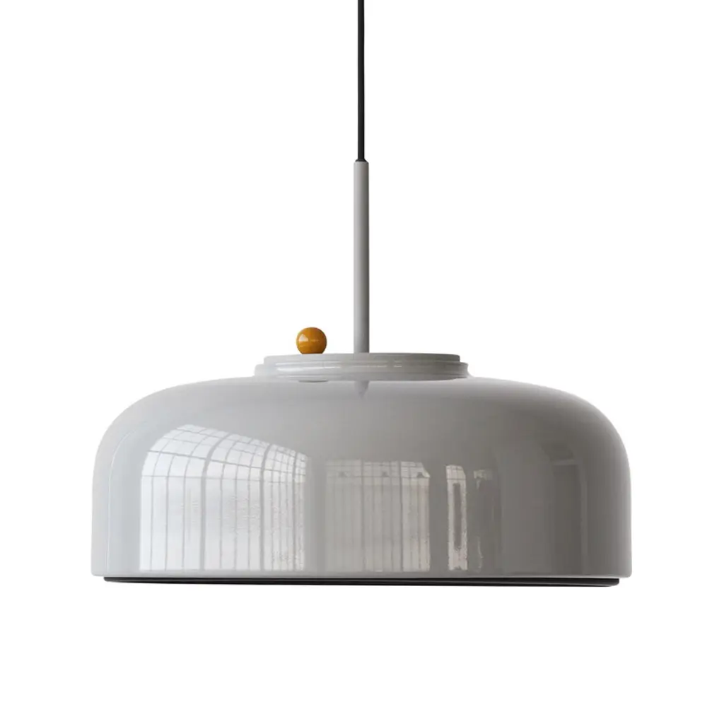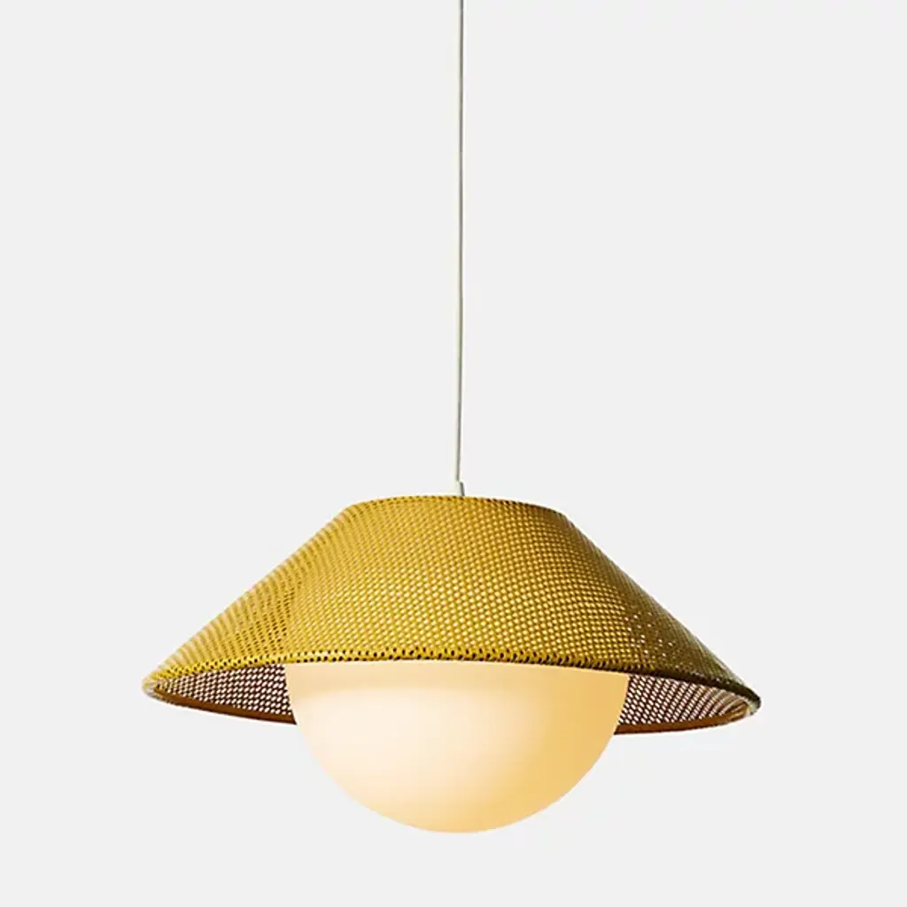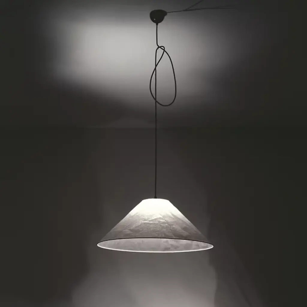 The Ingo Maurer Knitterling Pendant was designed by Maurer in 1978 to create a unique play of light and shadow with a simple flared shade. This is made possible by the material from which the shade is made: crinkled white Japanese paper. Appearing soft and subtle when the light is turned off, the crinkled paper's true depth of texture is only fully revealed when illuminated.