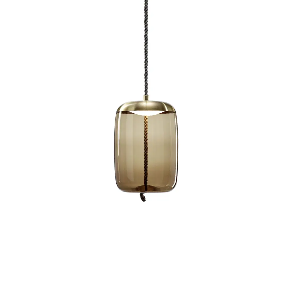 Boldly elemental, the Knot Cilindro LED Pendant Light from Brokis fuses delicate glasswork with industrial strength in a strikingly modern silhouette. Designed by Chiaramonte Marin, this pendant features a sleek, cylindrical handblown glass shade cinched by a robust, natural-fiber rope—an arresting detail that appears to tension the form from within. The warm, integrated LED source glows softly through the transparent or tinted glass, casting ambient light with sculptural presence. Suspended alone or in a series, Knot Cilindro brings tactile contrast and refined drama to contemporary interiors. Highlights