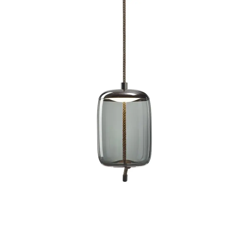 Boldly elemental, the Knot Cilindro LED Pendant Light from Brokis fuses delicate glasswork with industrial strength in a strikingly modern silhouette. Designed by Chiaramonte Marin, this pendant features a sleek, cylindrical handblown glass shade cinched by a robust, natural-fiber rope—an arresting detail that appears to tension the form from within. The warm, integrated LED source glows softly through the transparent or tinted glass, casting ambient light with sculptural presence. Suspended alone or in a series, Knot Cilindro brings tactile contrast and refined drama to contemporary interiors. Highlights